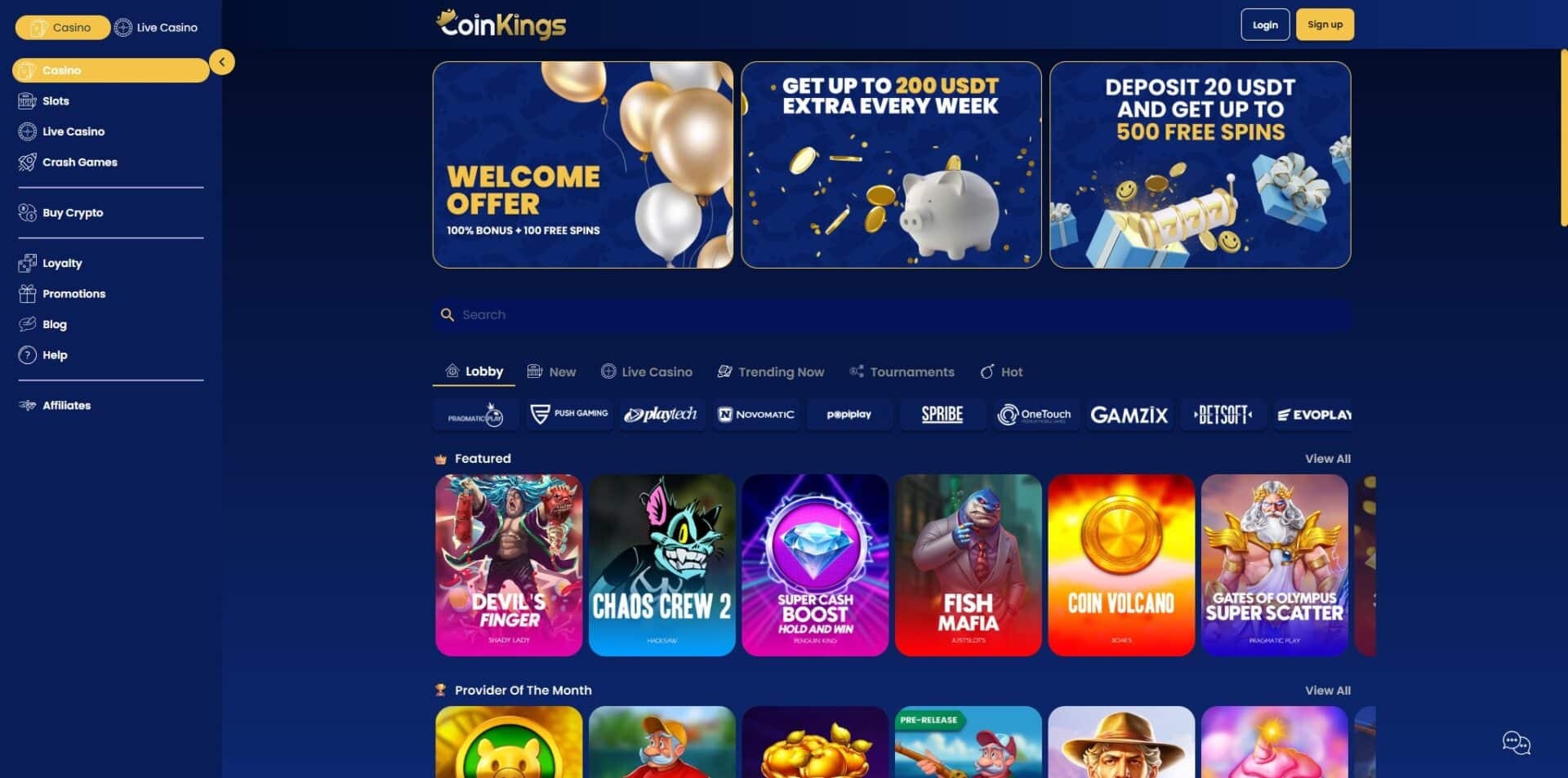 In the grand sheme of CoinKings’ offerings, the Loyalty Program emerges as a crowning jewel, transforming player dedication into a journey of regal rewards. As you ascend the Loyalty ladder with every wager, a kingdom of exclusive bonuses unfolds. Transitioning through the Level Up Bonuses, Weekly Bonuses tailored to your activity, and Monthly Cashback embodies the royal treatment awaiting committed players. With a range of diverse VIP levels, each accompanied by escalating bonuses and the personalized touch of a dedicated VIP Manager, CoinKings’ Loyalty Program ensures that your loyalty is not just recognized but celebrated in majestic style. Join the realm where loyalty reigns supreme, and let the allure of royal rewards elevate your gaming experience to unparalleled heights.