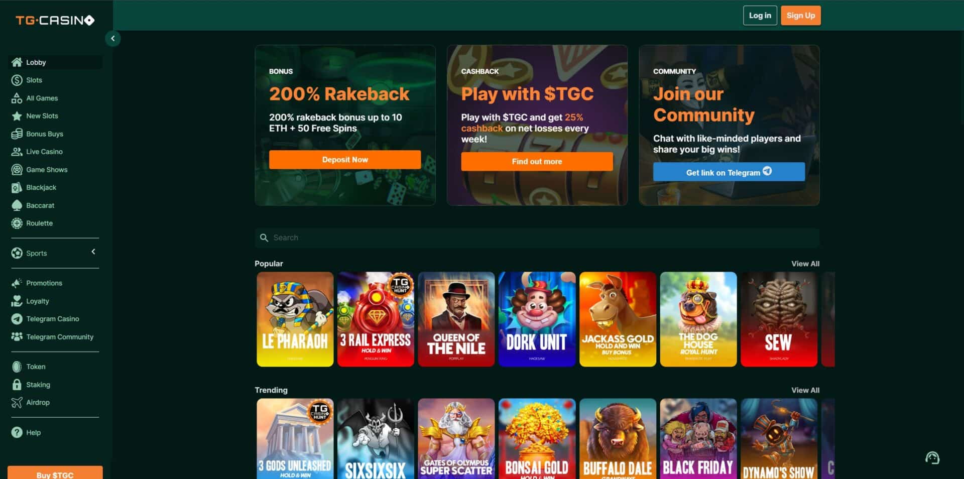 There’s a special treat waiting for people who decide to use the house-own $TGC Token to play at the TG.Casino. When using this cryptocurrency, players will be able to get 25% Cashback on all their net losses. Unfortunately, we don’t have exact information on how this works, since we don’t use this cryptocurrency.