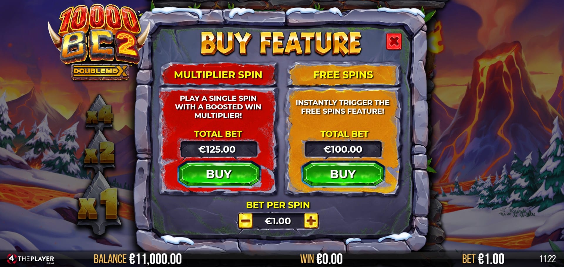 125x your bet to buy a single spin with a boosted random starting multiplier.