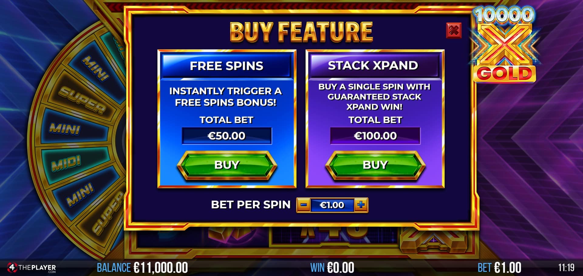 Stack Xpand Buy – Costs 100x the bet and guarantees a single spin with a Stack Xpand trigger.
