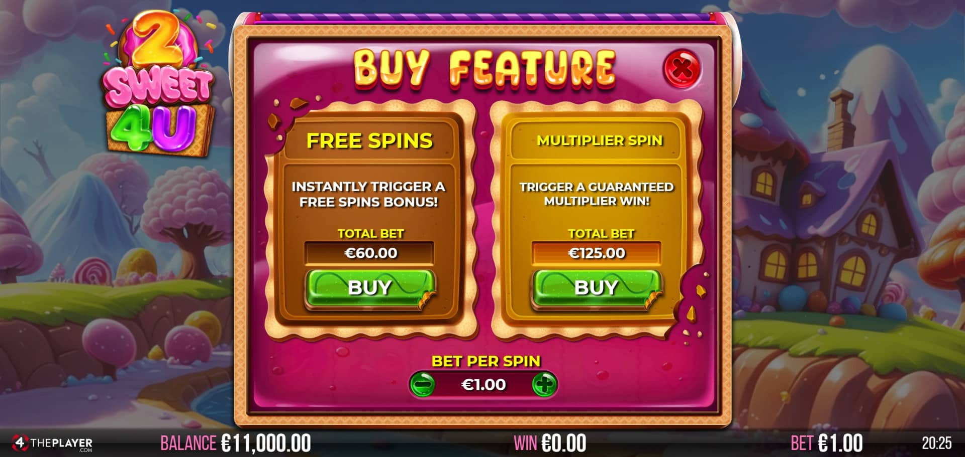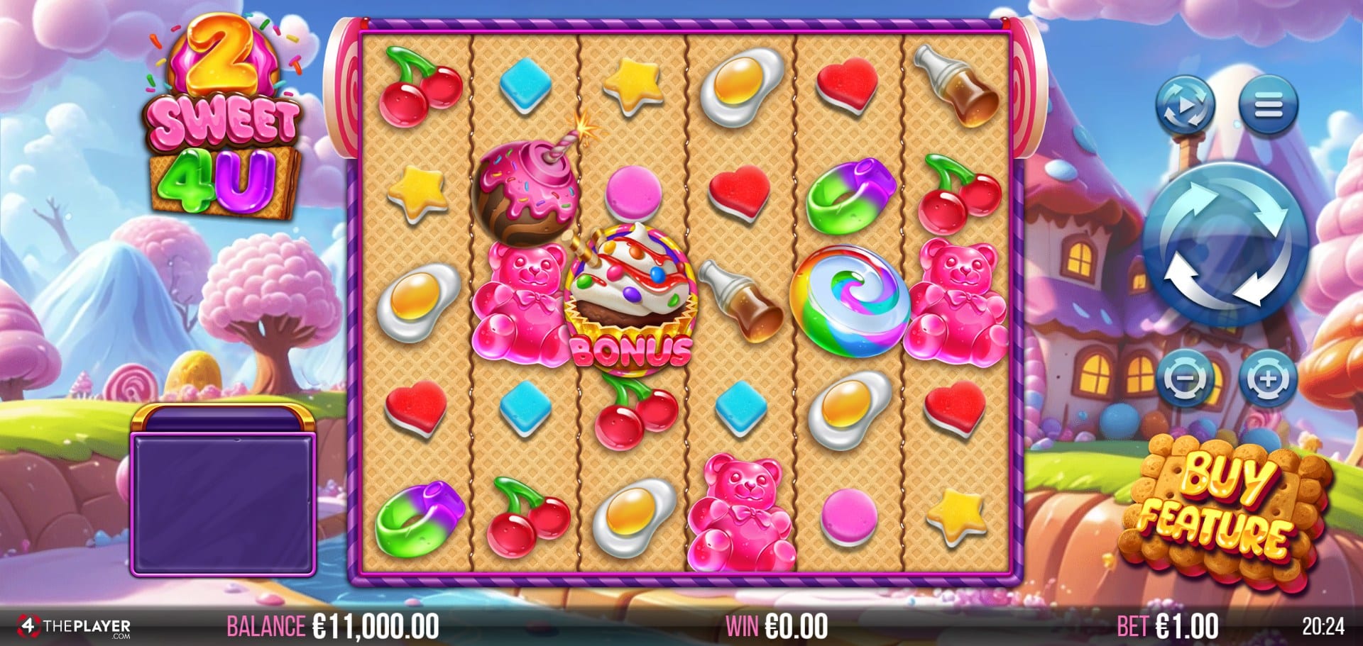 2 Sweet 4 U caters to a wide range of players with a minimum bet of €0.10 and a maximum of €80 per spin. The medium-high volatility ensures that while wins might not land constantly, they have significant potential when they do.