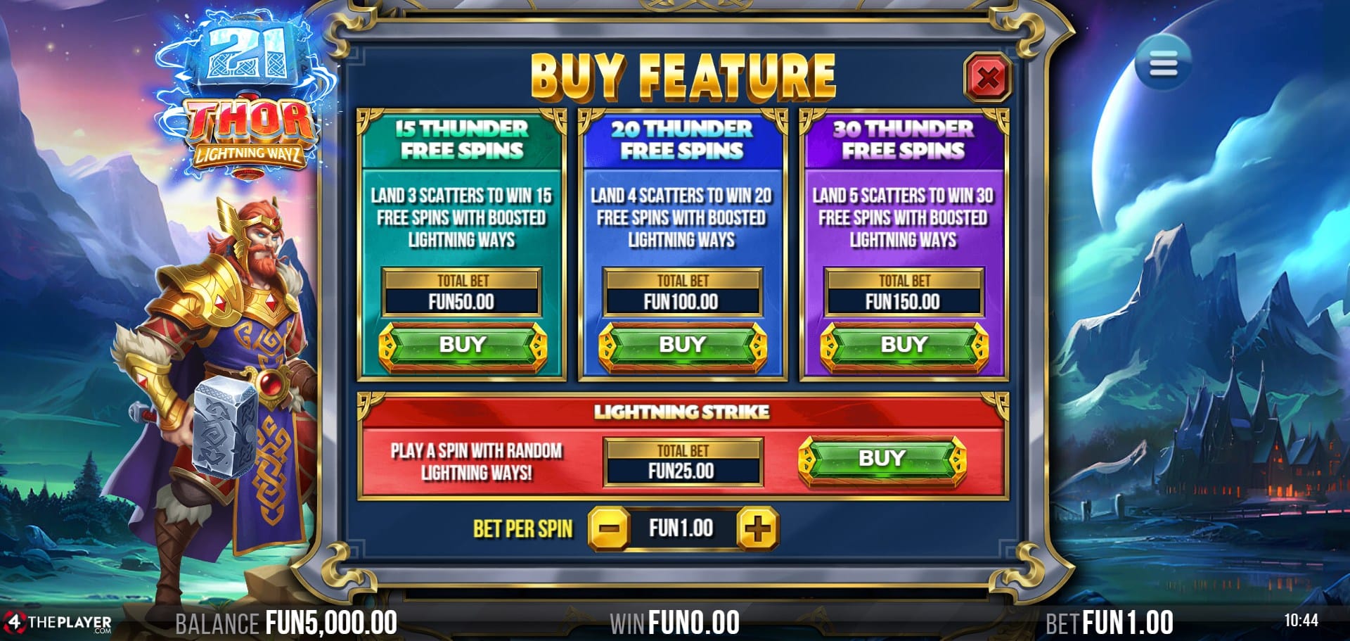 At its core, 21 Thor Lightning Ways follows the standard adjacent-reel win system. Wins form when matching symbols appear on consecutive reels starting from the leftmost side, with 3,125 ways to win thanks to the 5×5 setup.