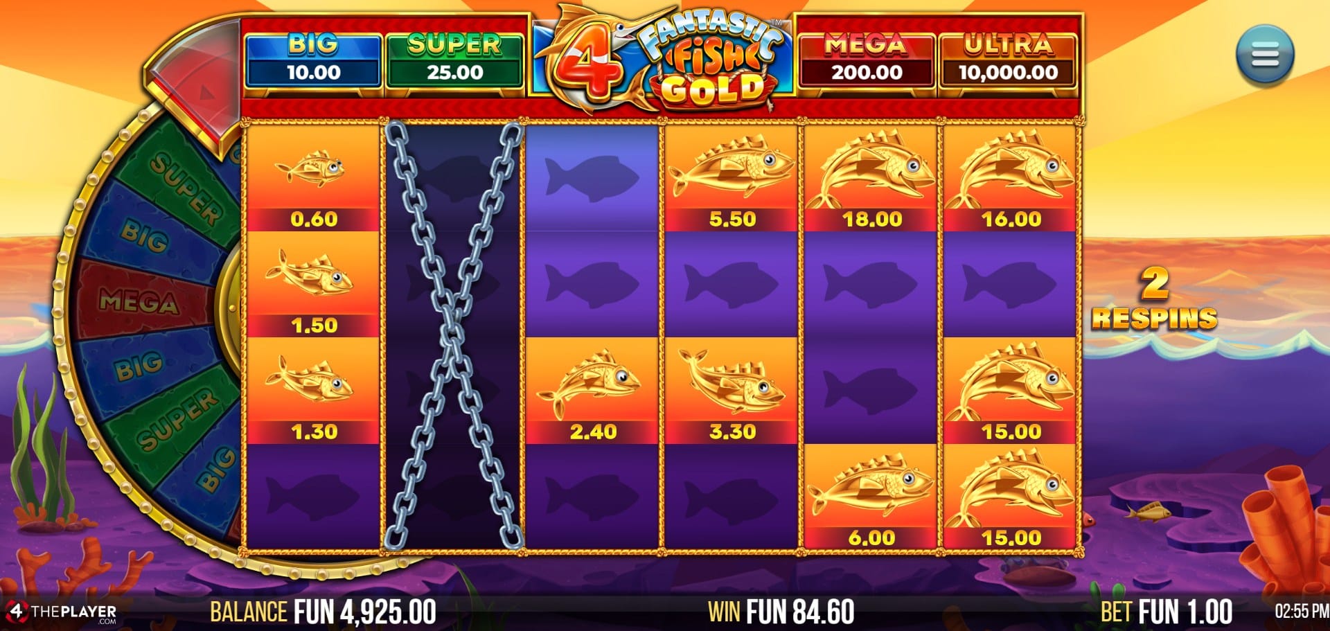 Fish symbols that land on open reels are locked in place and reset the spin counter to 3.