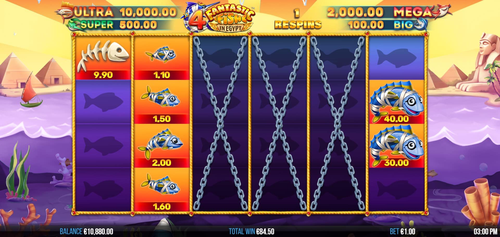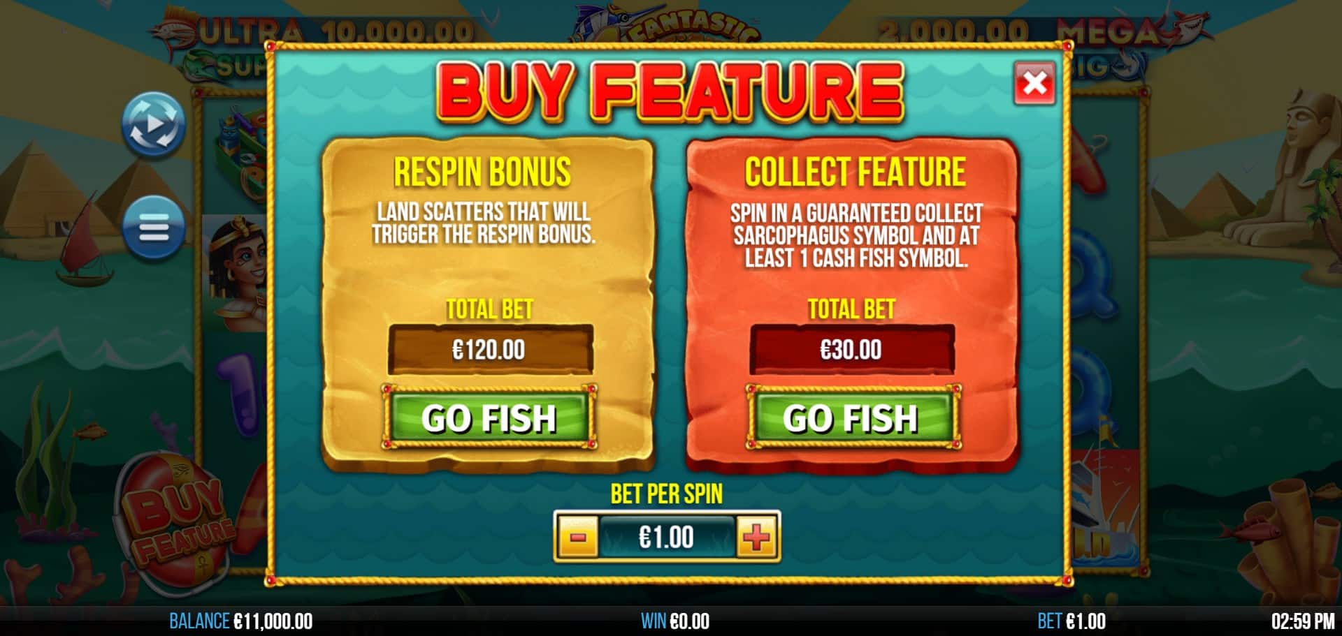 4 Fantastic Fish in Egypt is a bold mash-up of two distinct slot themes, executed with charm and attention to detail. The Ancient Egypt backdrop adds a fresh visual twist to the proven Fish for Cash mechanic, and the range of features—especially the Giant Squid, Shark, and Sarcophagus Scatter modifiers—keeps gameplay exciting.