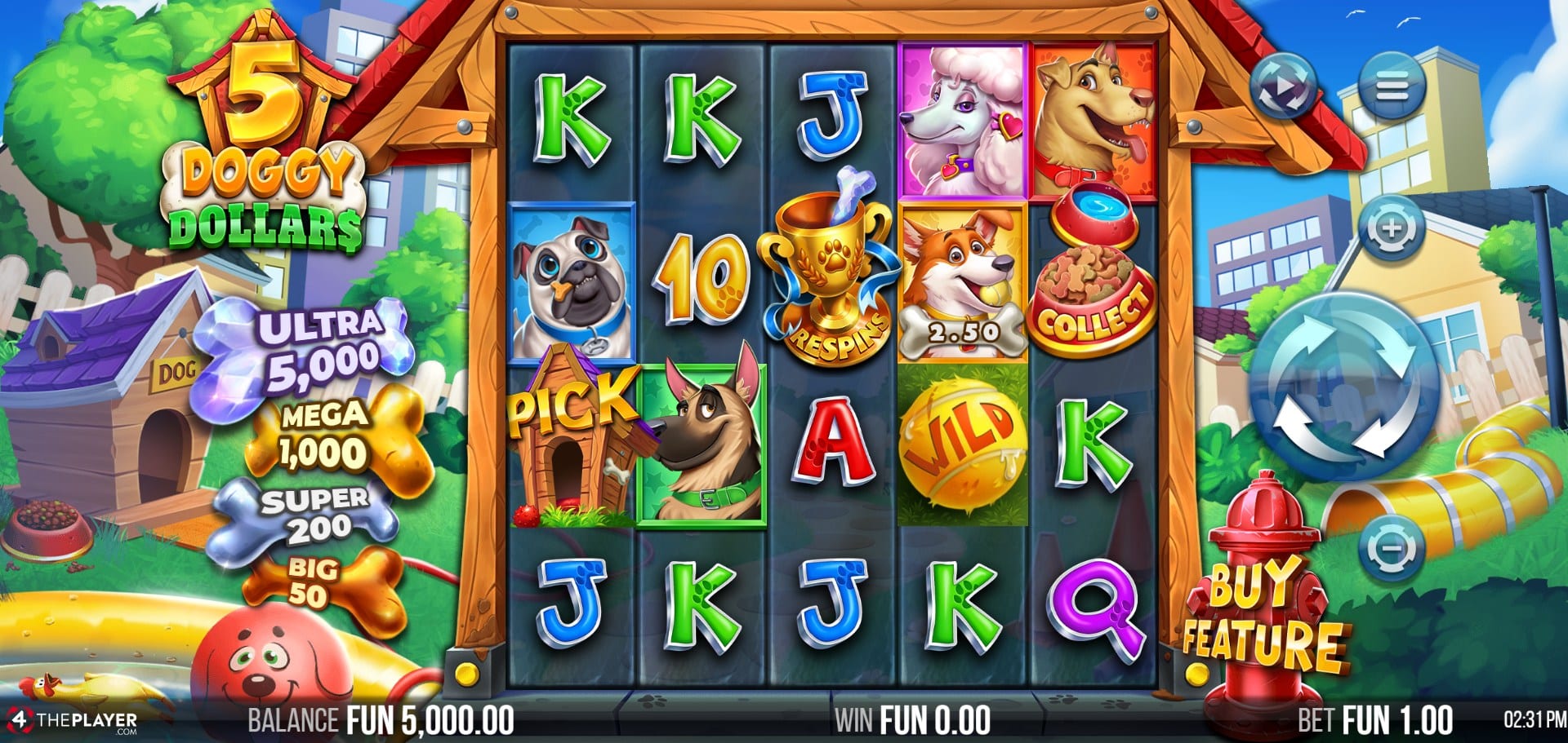 Overall, 5 Doggy Dollars is an entertaining choice for both dog lovers and fans of high-energy, feature-packed online slots. With its broad betting range, engaging mechanics, and bright, happy theme, it’s well-suited to players who enjoy games that keep the action flowing and the rewards varied.