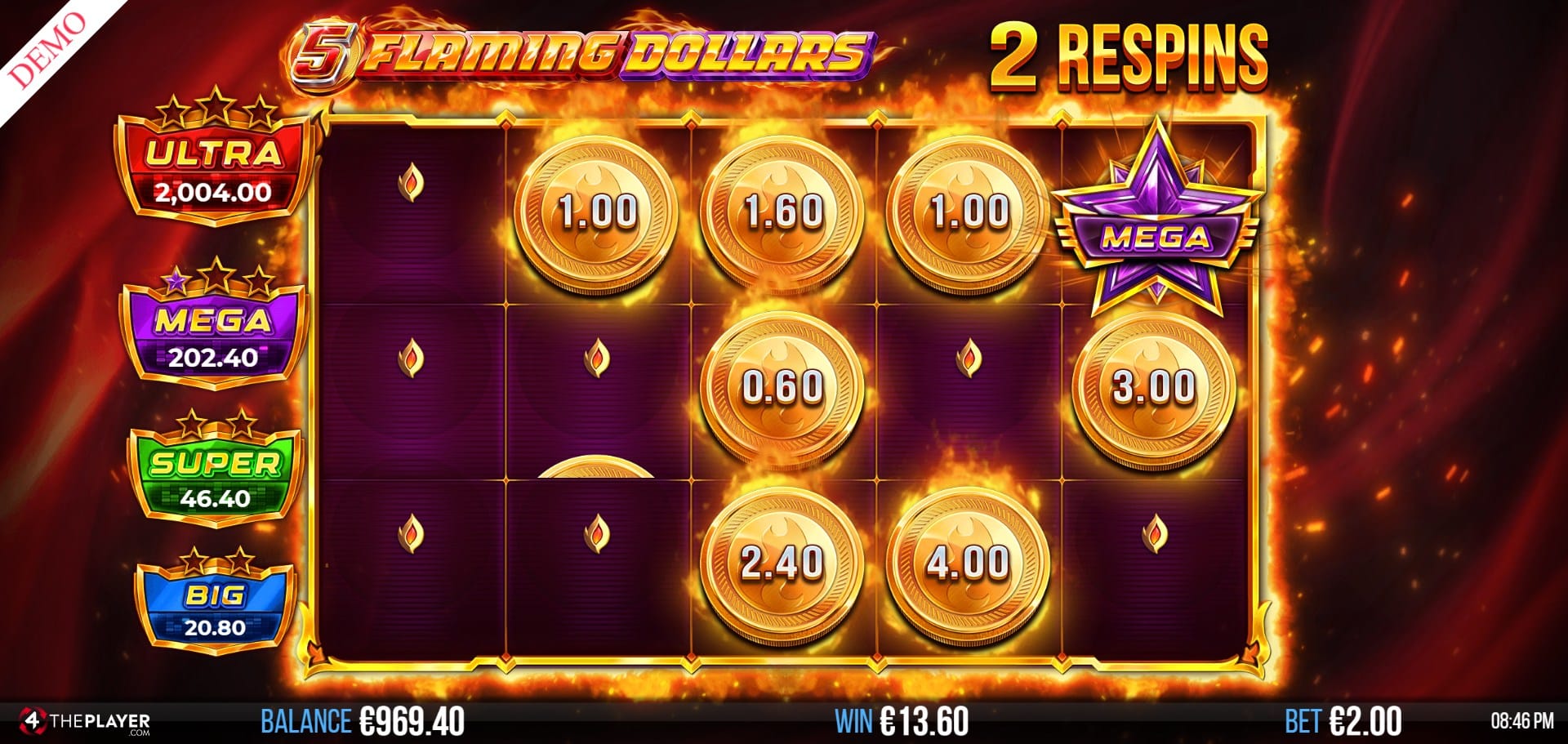 5 Flaming Dollars is a bold departure for 4ThePlayer, trading vibrant visuals and loud character slots for mechanical precision and minimalist style. The result is a game that might not immediately capture attention, but could grow on players who appreciate smart reward systems and evolving jackpot dynamics.