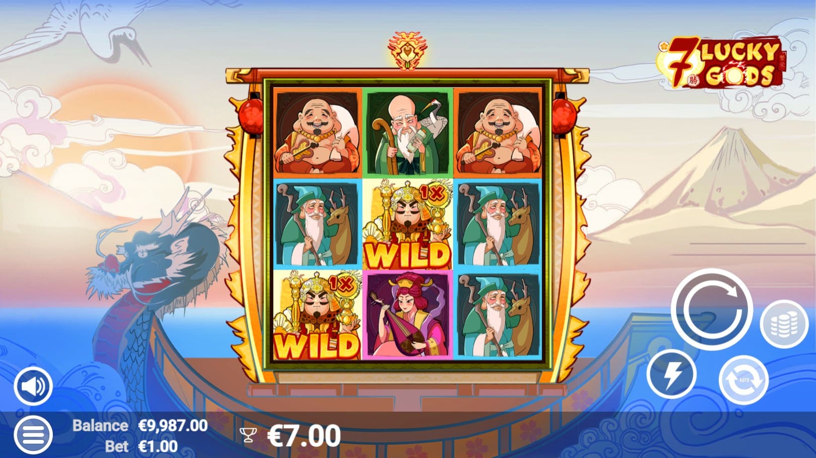 Gameplay in 7 Lucky Gods is simple, making it ideal for players who prefer straightforward slots. The 3×3 grid and 5 paylines mean that wins are easy to track, and combinations are formed by landing 3 matching symbols across a payline.