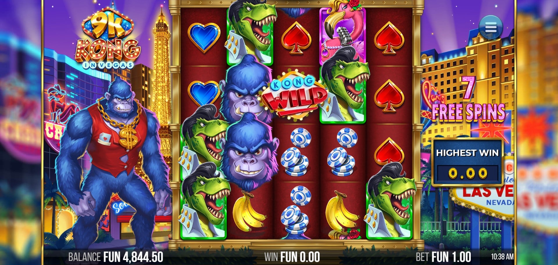 King Kong may be famous for scaling skyscrapers in New York City, but in 9k Kong in Vegas, he swaps the Big Apple for the glitzy neon lights of Las Vegas. 4ThePlayer delivers a highly volatile slot with an unusual twist: the Highest Win Repeater mechanic, allowing players to re-spin for big prizes and free spins repeatedly. The game blends spectacle with substance, offering 1,024 ways to win and a thematic fusion of primate power and Sin City decadence.