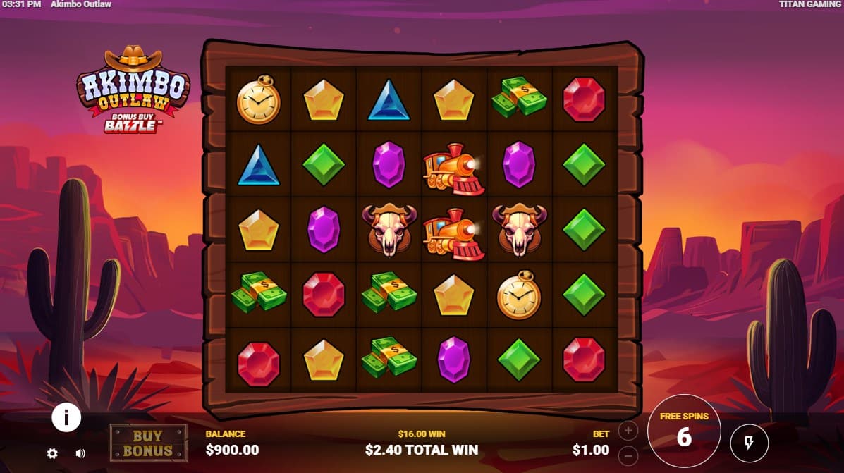 Bonus features in Akimbo Outlaw revolve around free spins modes with persistent multipliers and enhanced Outlaw interactions, triggered by clusters of bonus symbols depicted as wanted posters.