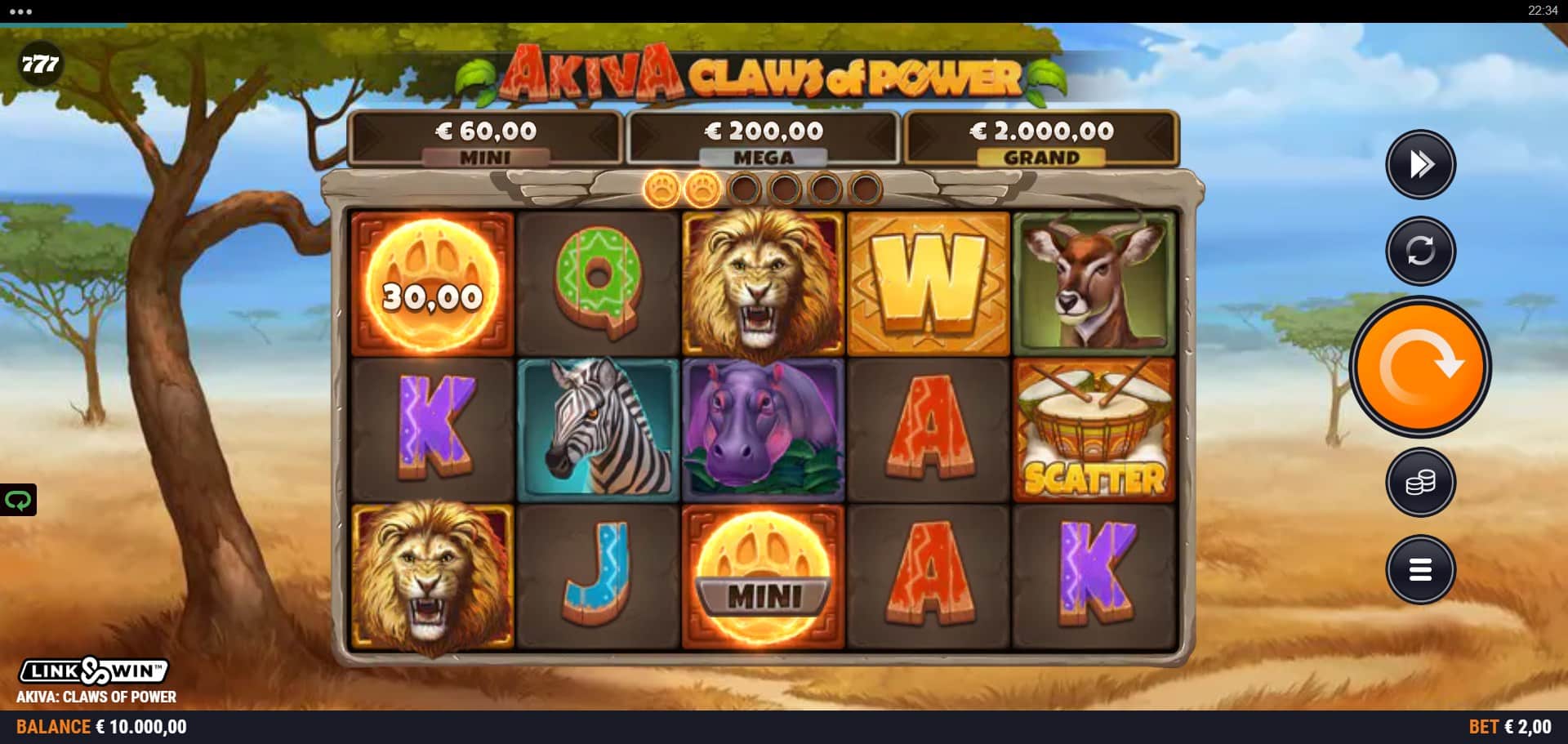 With bets ranging from €0.20 to €100, Akiva: Claws of Power supports all types of players. The 96.20% RTP is competitive, and the medium volatility aligns well with the game’s consistent hit rate and moderate bonus potential.