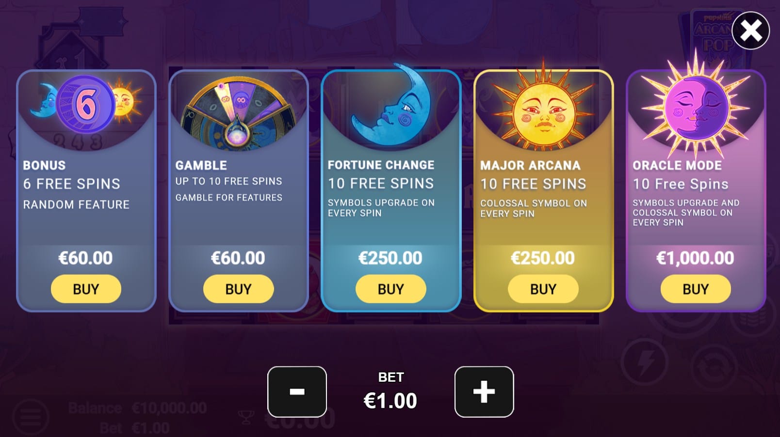 ArcanaPop offers a betting range of €0.20 to €100 per spin, making it suitable for both casual players and high-rollers.