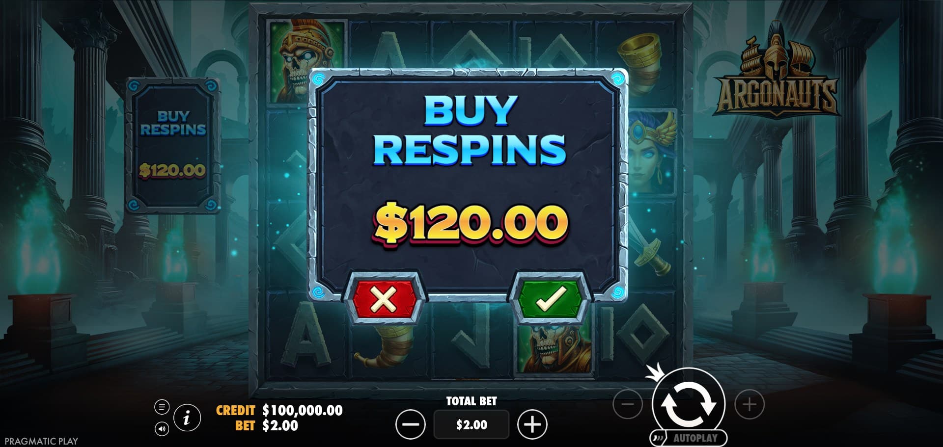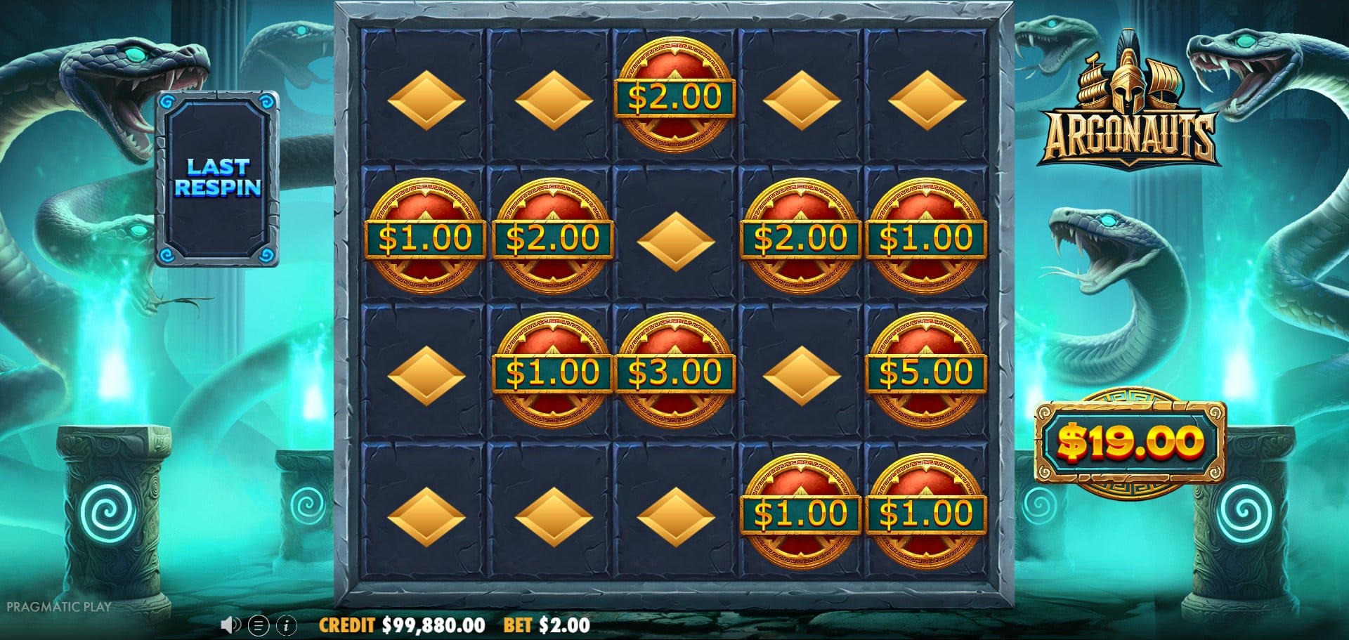 Argonauts supports bets ranging from $0.20 to $240, making it accessible to casual players and high rollers alike. The game uses a high-volatility math model, meaning wins may be infrequent but can be substantial—especially when multipliers come into play during the respins.