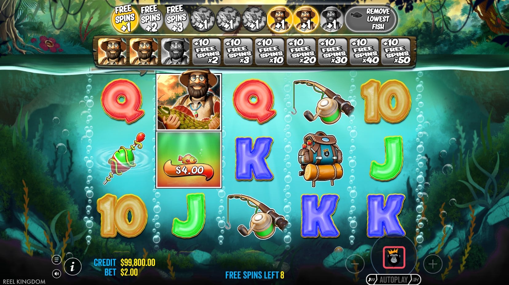 - Already Collected Fisherman Wilds: Up to 3 added to the progress meter above reels.