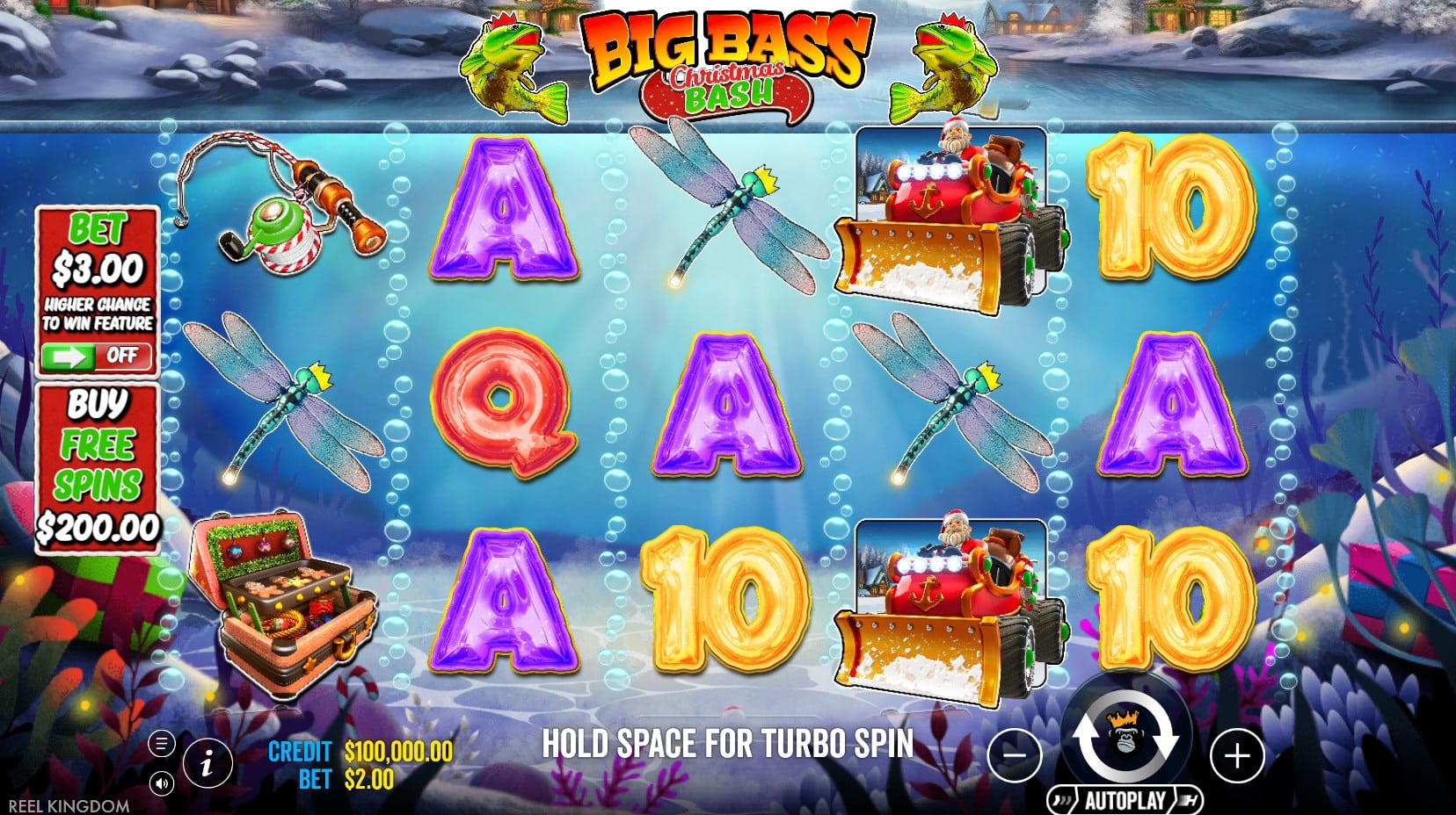 The visual aesthetic of Big Bass Christmas Bash embraces a festive holiday theme, transforming the familiar fishing motif into a winter wonderland setting. Snow-covered reels are framed by icy lakeshores adorned with Christmas decorations, twinkling lights, and subtle animations of falling snowflakes. The background features a serene frozen lake under a starry night sky, evoking a cozy yet adventurous holiday atmosphere. This iteration stands out as the most polished among the series’ Christmas variants, with improved graphical fidelity that enhances immersion without overwhelming the interface.