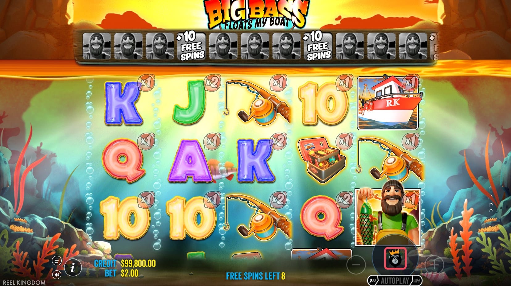 Big Bass Floats My Boat layers features around money collection and multipliers, elevating base gameplay into high-potential bonus rounds. The core Wild Symbol (fisherman) not only substitutes but collects all visible Money Symbols during Free Spins when landing together, applying position-specific multipliers.