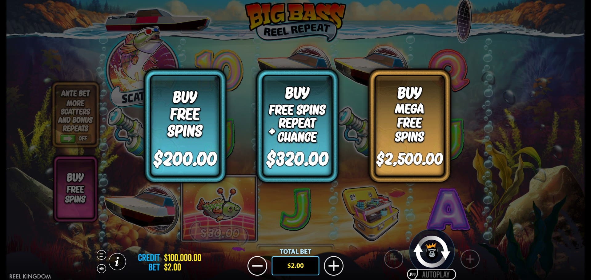 At its core, Big Bass Reel Repeat sticks closely to the Big Bass blueprint: simple paylines, straightforward symbol values, and a strong focus on bonus-round action. The 5×3 layout with 10 paylines keeps things accessible, though the ante bet and extensive bonus buy menu give players meaningful control over volatility spikes.