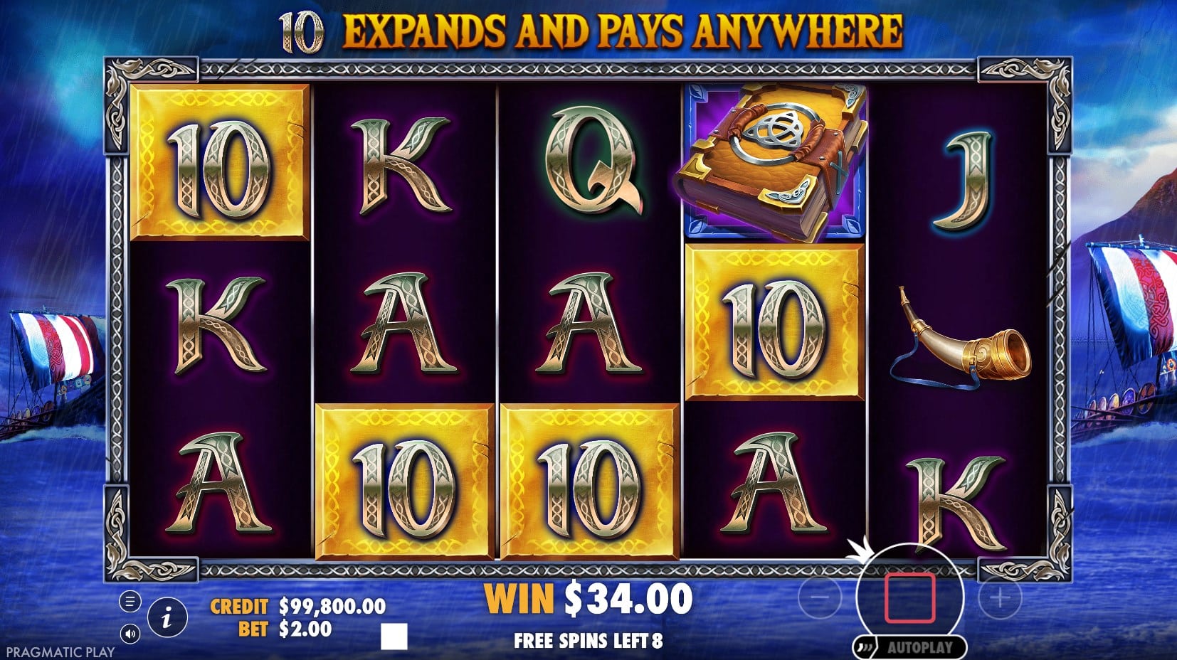The Wild Symbol, represented by the Book, substitutes for all pay symbols and pays 2x, 20x, or 200x the bet for 3, 4, or 5 instances. Landing 3+ Scatters (the same Book icon) anywhere triggers 10 Free Spins and awards instant payouts of 2x, 20x, or 200x the bet for 3, 4, or 5 triggers. During Free Spins, a random symbol (from low payers to premiums, excluding Wild) is selected as the special Expanding Symbol before spins begin. This symbol pays for 2+ instances anywhere on the reels, not requiring adjacency or paylines. When part of a win, it expands to cover its entire reel, potentially filling multiple reels for massive combinations—especially lucrative with high payers like the Viking King at 500x for five.