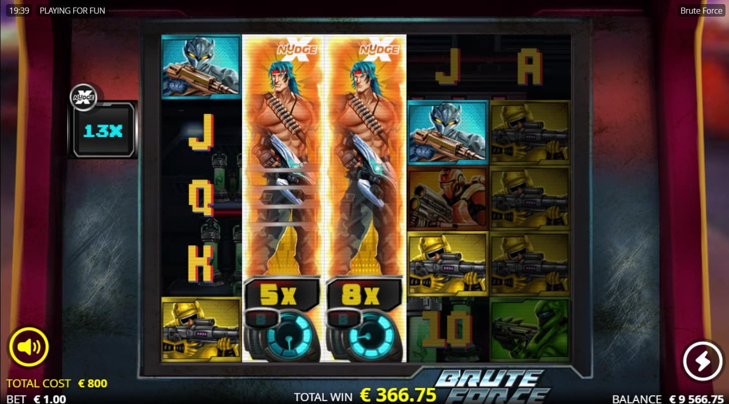 The xNudge Meter aggregates these multipliers from all expanded Wilds on a spin, boosting win calculations. Brute Spins activate with 3 Scatters, awarding 10 Free Spins; additional Scatters retrigger 2 more each. Super Brute Spins trigger on 4 Scatters for 10 spins, where fully nudged Wilds can turn sticky, locking for the duration and sustaining multiplier accumulation.