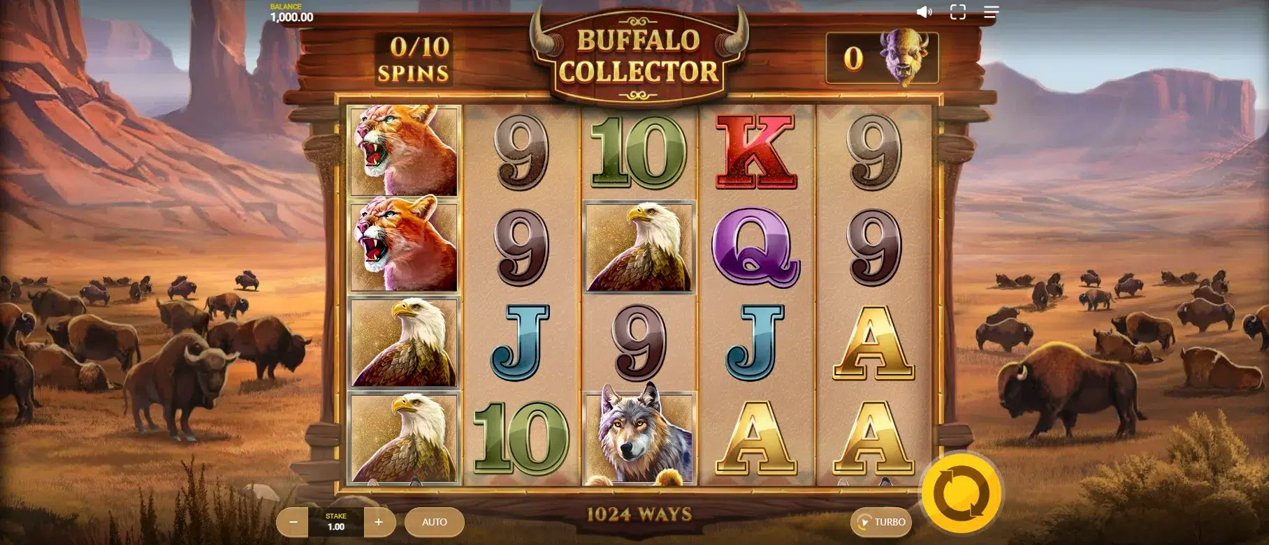This five-reel, four-row slot uses 1,024 ways to win rather than traditional paylines, offering a greater volume of win opportunities on every spin. With a medium-high volatility model, a max win of 10,000x, and a 95.75% RTP, Buffalo Collector isn’t designed to shake the foundations of the genre—but it does provide enough drama through its spin-cycle progression and feature triggers to keep things interesting, especially during the all-important 10th spin or during bonus rounds.