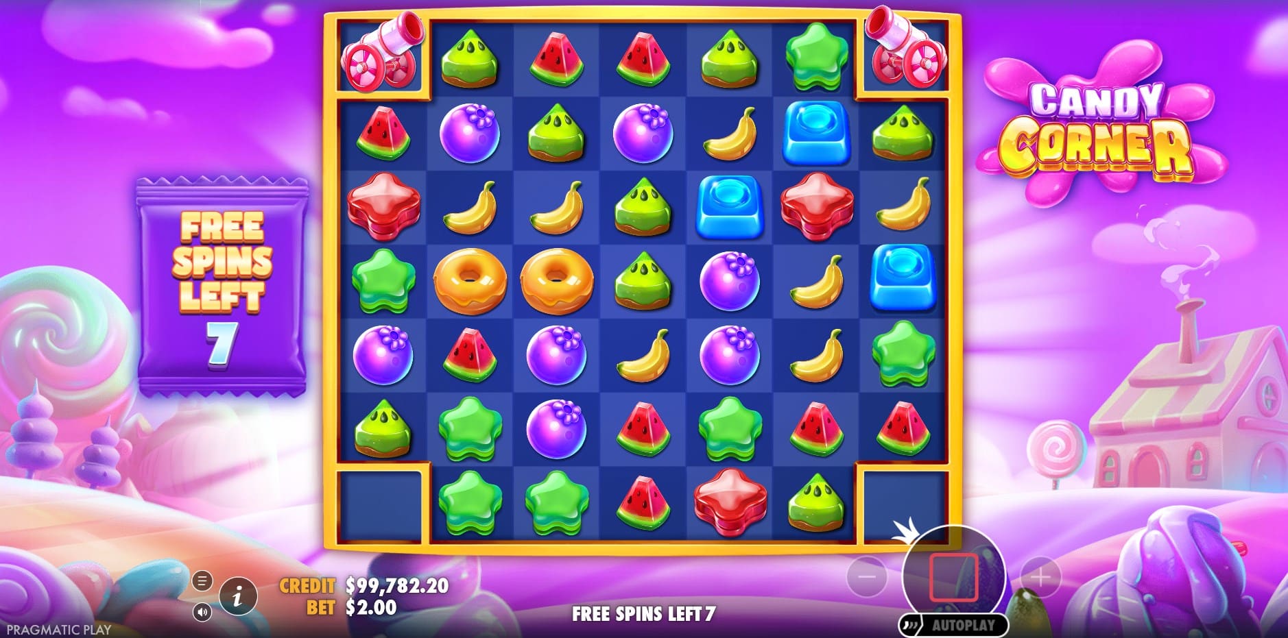 Candy Corner is a candy-themed slot developed by Pragmatic Play and released on 31 October 2024. It features a 7×7 grid with cluster pays, where wins form from 6 or more matching symbols connected horizontally or vertically. The game incorporates a Tumble Feature and unique Modifier Corners in the four outer grid positions, which only host special symbols capable of delivering cash prizes, multipliers, or wild additions. This cluster-paying style suits players who enjoy tumbling mechanics and high-volatility action in vibrant, sweet-themed environments, similar to titles like Sugar Rush 1000.