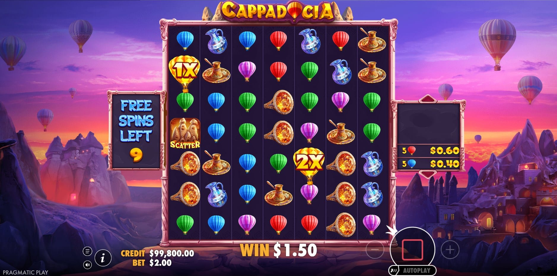 Cappadocia is a cluster pays video slot developed by Pragmatic Play and released on July 9, 2021. The game draws its theme from the historic region of Cappadocia in Anatolia, Turkey, renowned for its unique fairy chimneys, ancient rock-cut architecture, and hot air balloon tourism. Players are immersed in a scenic aerial perspective, with hot air balloons drifting across the backdrop as they chase wins on a massive 7×7 grid. This high-volatility title employs a tumble mechanic paired with cluster wins, appealing primarily to enthusiasts of cascading reels and multiplier-building features who seek substantial payout potential up to 10,000x the stake. It targets experienced slot players comfortable with high-risk, high-reward gameplay styles similar to other cluster-based adventures.
