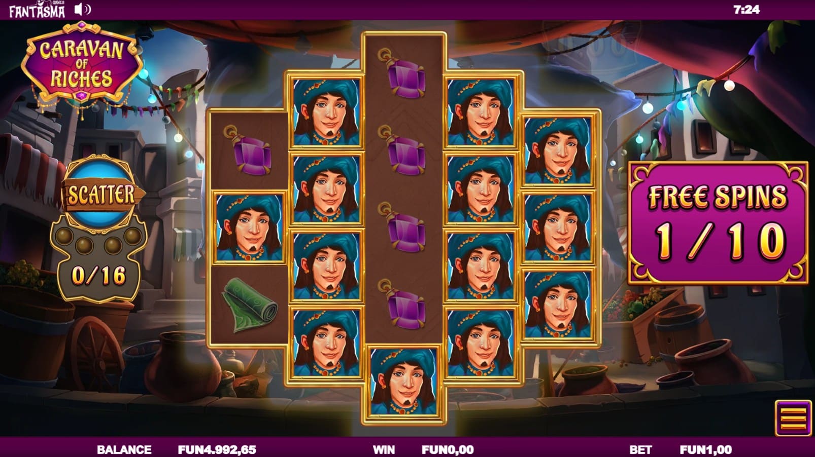 Caravan of Riches aims to capture the spirit of trade, travel, and ancient fortune—and although it doesn’t always hit with the same creative flair Fantasma is known for, it delivers a mechanically solid slot with a distinctive identity.