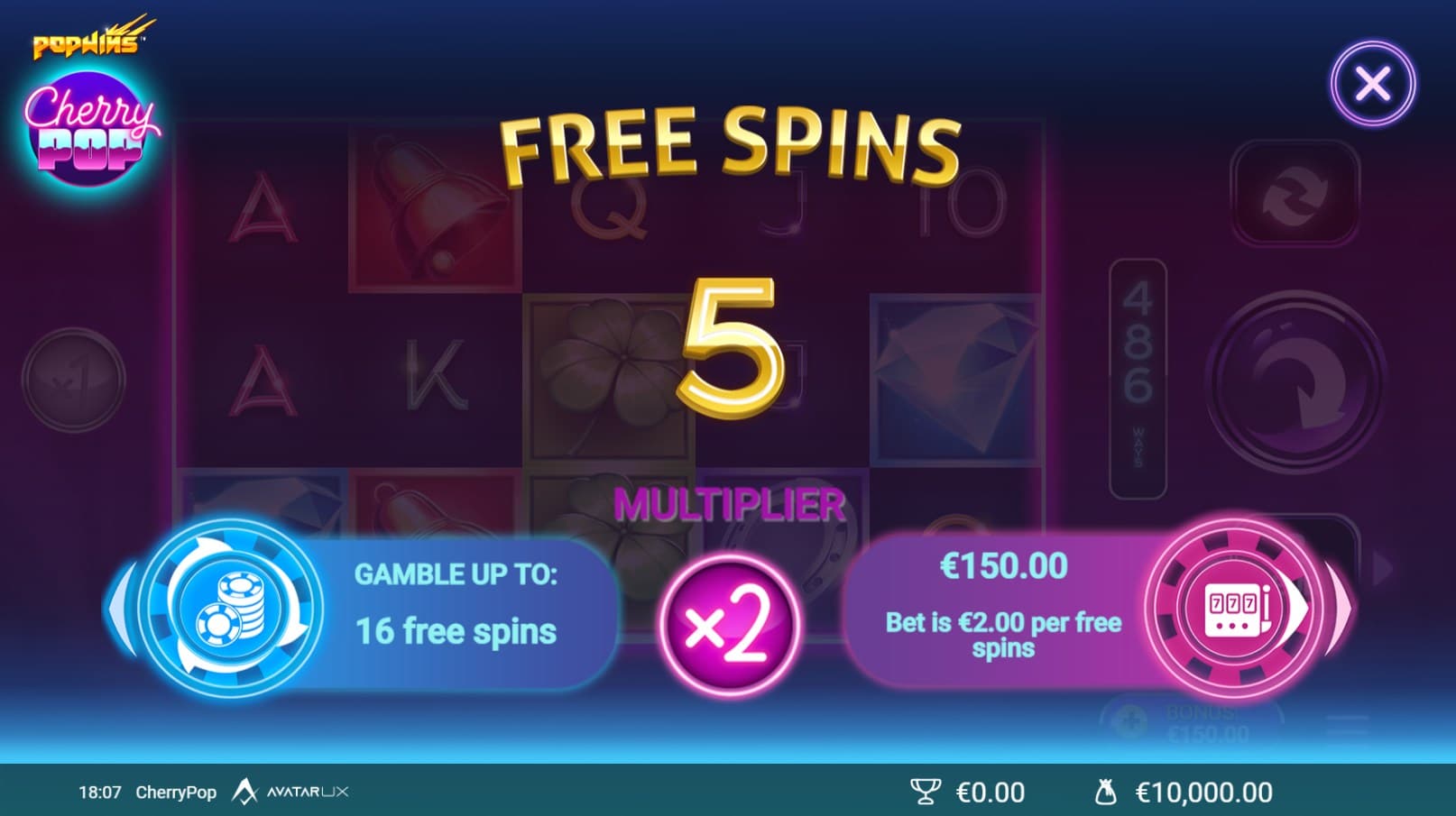 CherryPop offers a solid selection of features that maximize the PopWins mechanic’s potential, with free spins and multipliers taking center stage.