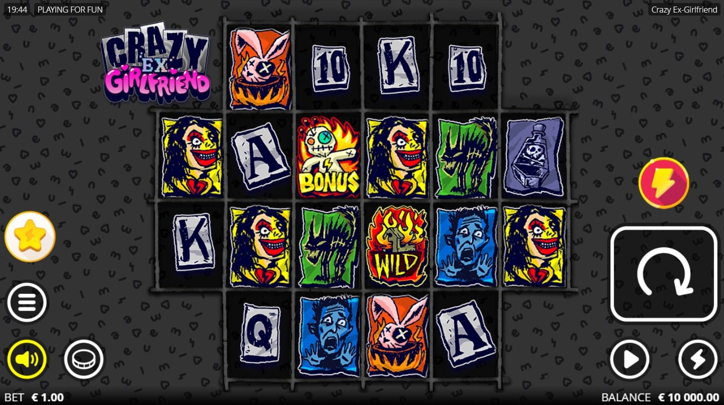 Crazy Ex-Girlfriend is a video slot developed by Nolimit City and released on 2025-12-02. The game adopts an eccentric and chaotic theme centered around the aftermath of a failed relationship involving a character depicted with questionable sanity, featuring imagery of revenge and emotional turmoil. It employs a 6-reel setup with a variable row configuration of 2-4-4-4-4-2, offering 1,024 ways to win. Gameplay emphasizes high-volatility mechanics with sticky respins, position multipliers, and multiple free spins variants, alongside feature buy options and boosters. This slot targets players who enjoy provocative, satirical themes, extreme volatility, and Nolimit City’s signature unorthodox mechanics, particularly those seeking high-risk, high-reward experiences with potential for substantial payouts up to 9,999x the bet.