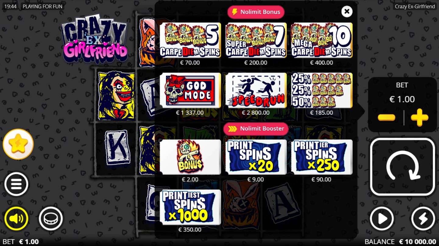 Crazy Ex-Girlfriend excels in delivering Nolimit City’s hallmark high-volatility mechanics, including innovative Rebound Spins with escalating multipliers, versatile free spins tiers with sticky Wilds, and extensive buy options like God Mode and Speedrun, all supporting the impressive 9,999x max win. The xSplit and Plot Twist integrations add depth to tumbling sequences, while Nolimit Booster enhances base game accessibility. However, the deliberately chaotic, unpolished design and provocative theme may alienate players seeking refined visuals or less controversial narratives, potentially limiting broad appeal despite its satirical edge. Strengths lie in mechanical familiarity for series fans and potential for explosive payouts; weaknesses include subjective thematic taste and RTP variants requiring caution. Players can test the slot risk-free using the built-in demo available on this page. Overall, it provides a solid, if niche, high-stakes experience for volatility enthusiasts.