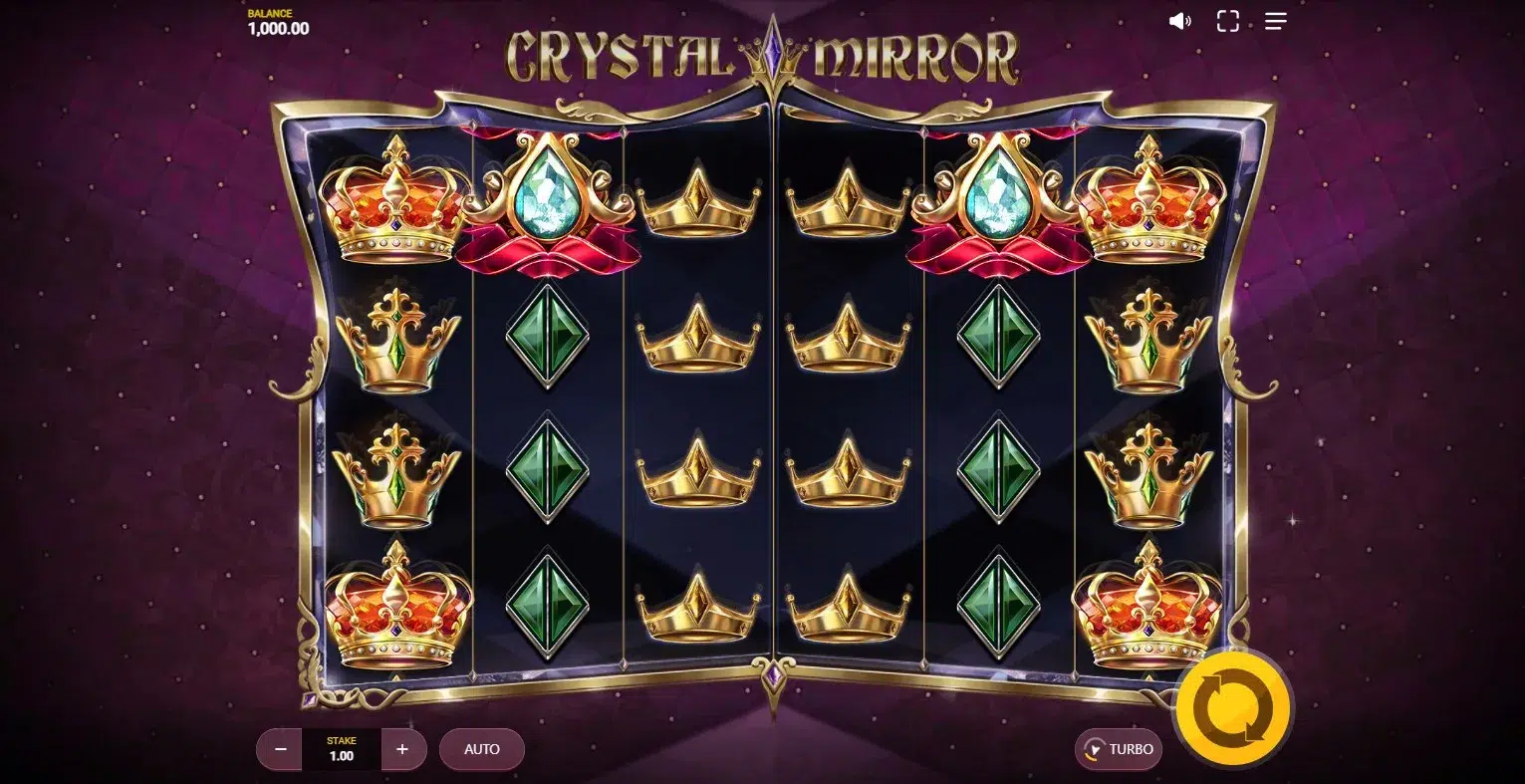 Crystal Mirror is a visually elegant and understated slot. Red Tiger has adopted a luxurious design theme that feels like a velvet-draped ballroom shimmering with mirrored walls and jeweled lights. The background is kept minimal but classy, putting the spotlight firmly on the reels, which sparkle with an assortment of gem-encrusted symbols and gold trim.The reels themselves are sleek, dark, and symmetrical, enhancing the mirrored effect both functionally and aesthetically. The animations are subtle—symbols glide into place smoothly, and wins are celebrated with soft glow effects and glittery trails. The interface is also intuitively laid out, with the spin and turbo options clearly accessible, and the paytable is visually easy to digest.