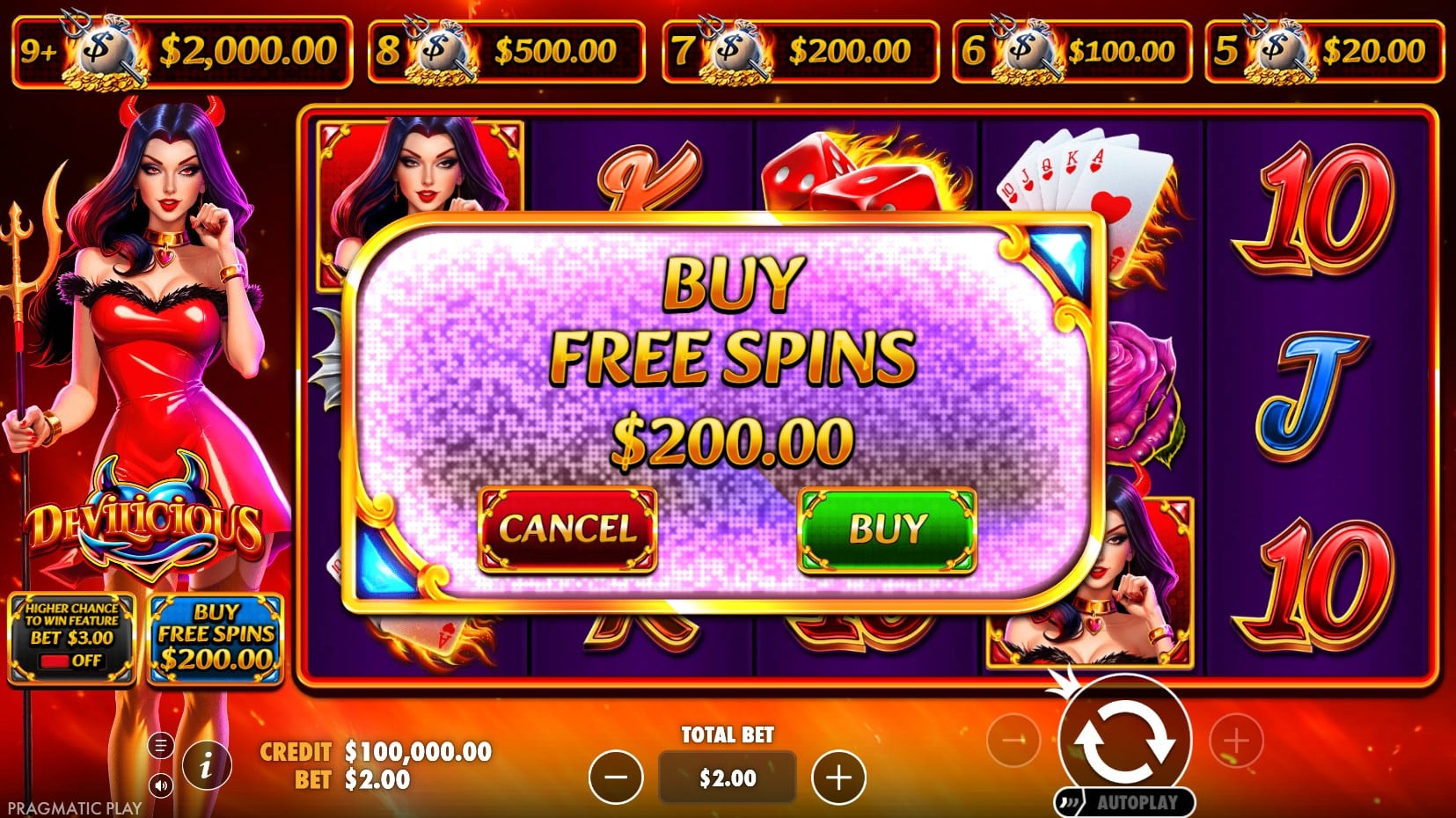 Devilicious excels in delivering a cohesive high-volatility experience through its generous Money Symbols (up to 1000x instant prizes), reliable Respin Feature, and escalating Total Multiplier in Free Spins, bolstered by a solid default RTP of 96.46%. The devil theme refreshingly features a female protagonist, paired with polished graphics, mobile compatibility, and thematic audio. Drawbacks include the exceptionally rare max win probability (1 in 1,250,000,000 spins) and lack of advanced modifiers like cascades, potentially limiting session variety for some. Players can test the slot risk-free using the built-in demo available on this page. Overall, it offers strong appeal for those prioritizing multiplier-driven bonuses and substantial upside in a straightforward package.
