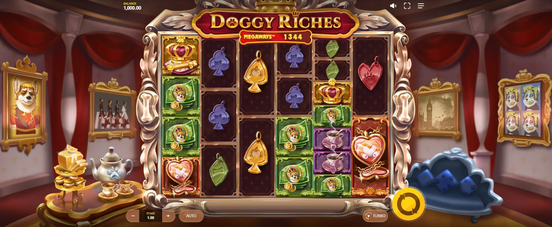 The soundtrack in Doggy Riches Megaways is just as rich in personality as the visuals. Classical music with a playful undertone sets the tone, supported by ambient sounds that evoke sipping tea in a grand royal hall. The corgis’ animations are paired with cutesy sound effects—paws tapping, wins ringing with chimes, and special feature triggers sounding like a royal ceremony about to begin.