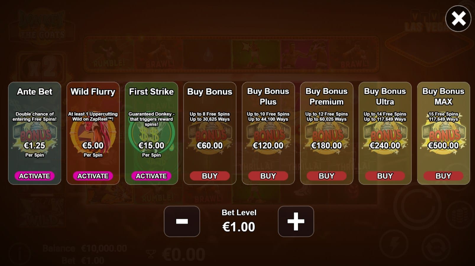 This range of options makes DonKey & the GOATS accessible to every type of player, from budget-conscious spinners to those chasing instant high-stakes action.