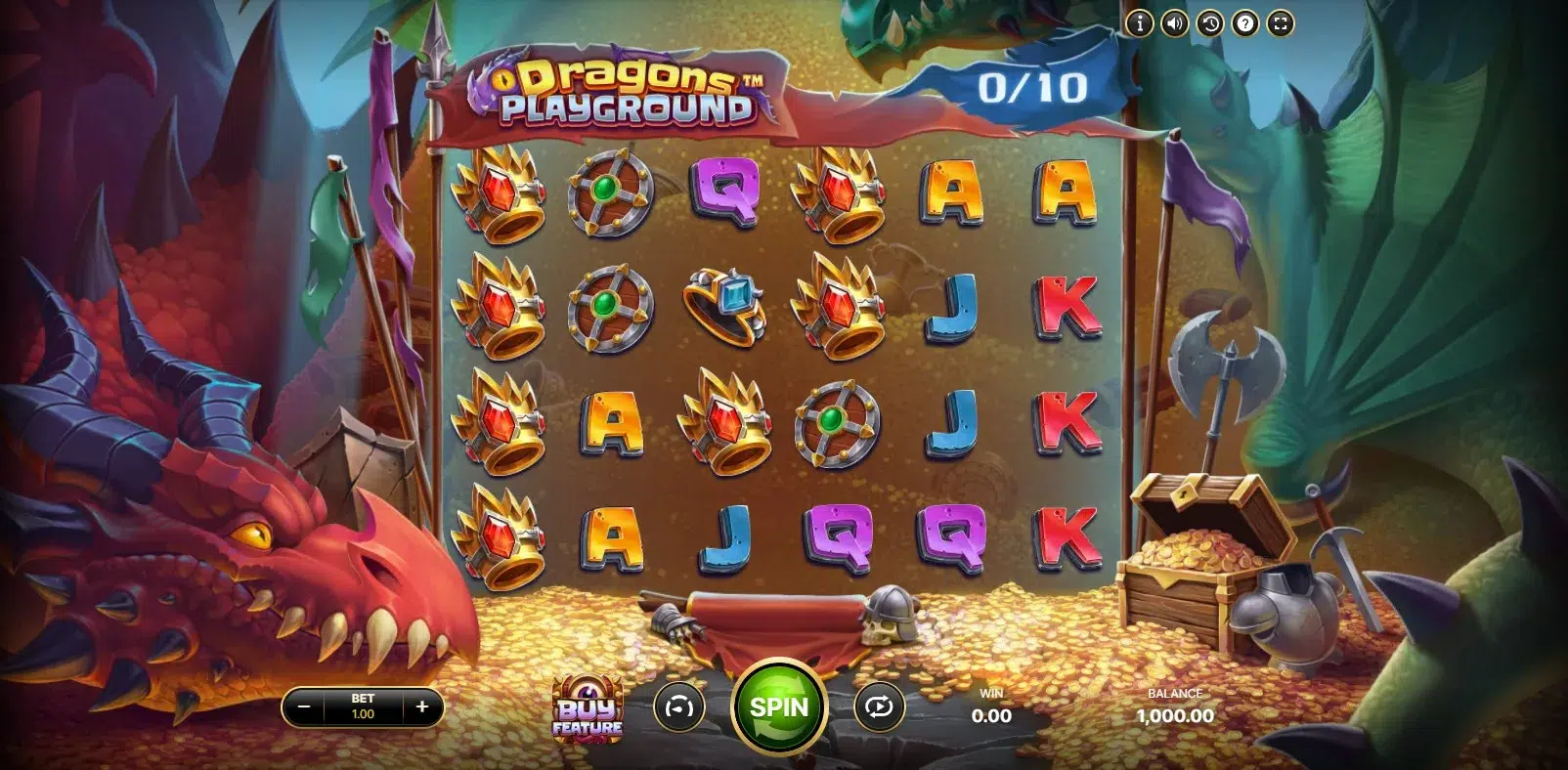 With a max win of 10,000x, high volatility, and 4,096 ways to win, Dragons Playground offers strong payout potential, especially in Free Spins. It’s a slot that rewards patience, encouraging players to build up frames over time and capitalize at key moments. For fans of feature-rich video slots who enjoy thoughtful pacing, warm visuals, and dragon-fueled fun, Dragons Playground is an inviting realm well worth visiting.