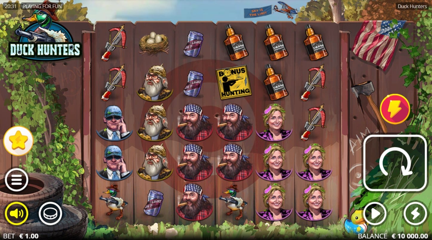 Duck Hunters is a video slot developed by Nolimit City and released on 2025-02-11. The game adopts a hunting theme set in the American backcountry, where players join a group of rednecks engaged in waterfowl hunting, blasting ducks and other symbols from the sky. It features a 6×5 grid with a scatter-pays mechanic, requiring at least 8 matching symbols anywhere for a win. This high-volatility title, labeled Extreme by the provider, targets experienced players seeking intense action, large multipliers, and substantial win potential up to a 30,000x maximum. The gameplay emphasizes cascading reels, explosive bombs, and transformative xWays symbols, culminating in tiered free spins bonuses that enhance multiplier persistence and feature upgrades. With its mobile-friendly design, Duck Hunters appeals to fans of innovative mechanics in a casual, thematic hunting adventure.