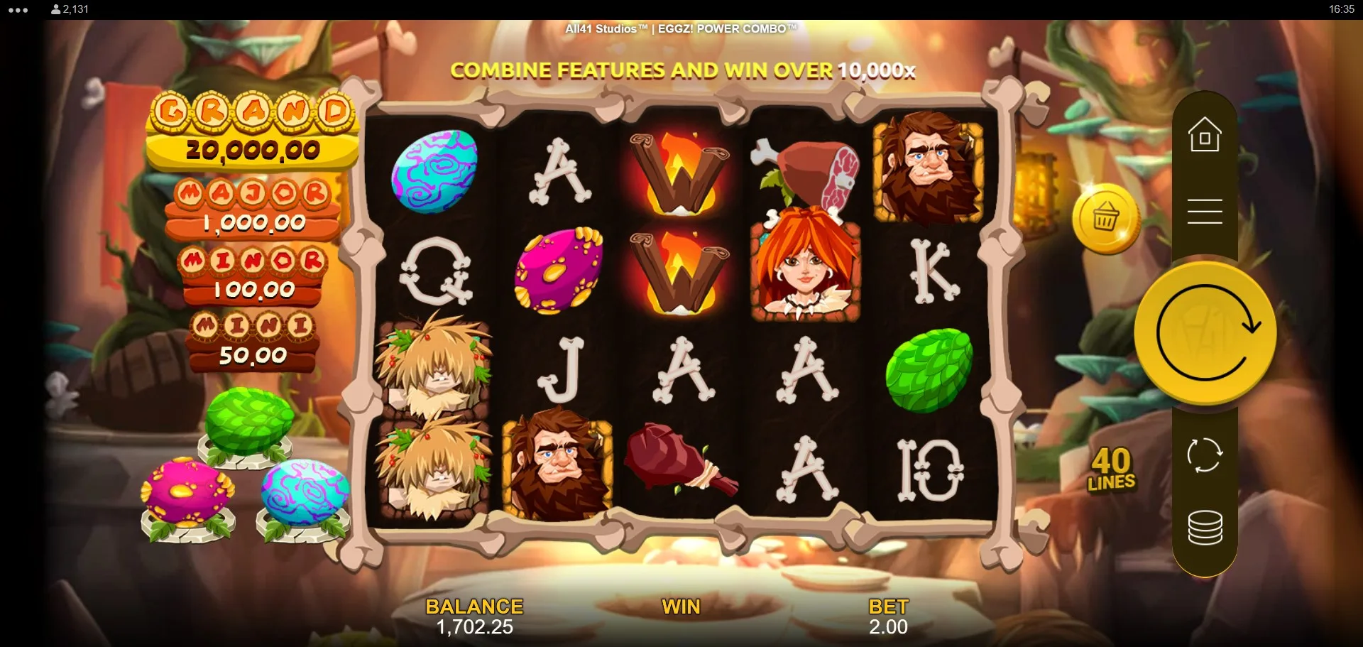 Released on July 6, 2023, Eggz! POWER COMBO is the third installment in the POWER COMBO series by All41 Studios, following Kings of Crystals and Chests of Gold POWER COMBO. Distributed via Games Global, this slot shifts away from the more serious tone of its predecessors and adopts a lighthearted, prehistoric theme reminiscent of The Flintstones or The Croods.