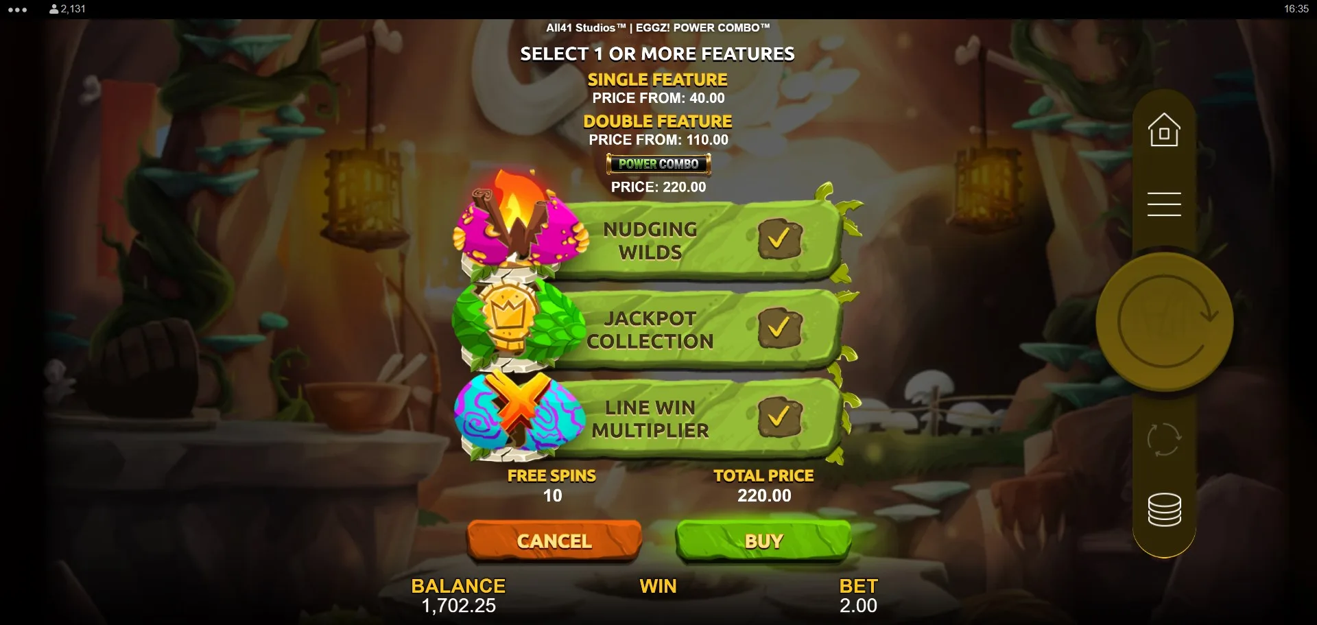 Eggz! POWER COMBO is a bright, cheerful take on the POWER COMBO formula, offering a thematic departure from the more serious, regal visuals of its predecessors. While the underlying mechanics are familiar—three distinct features, combinable into hybrid rounds, and fixed jackpots—the presentation and personality of the game make it feel fresher and more inviting.