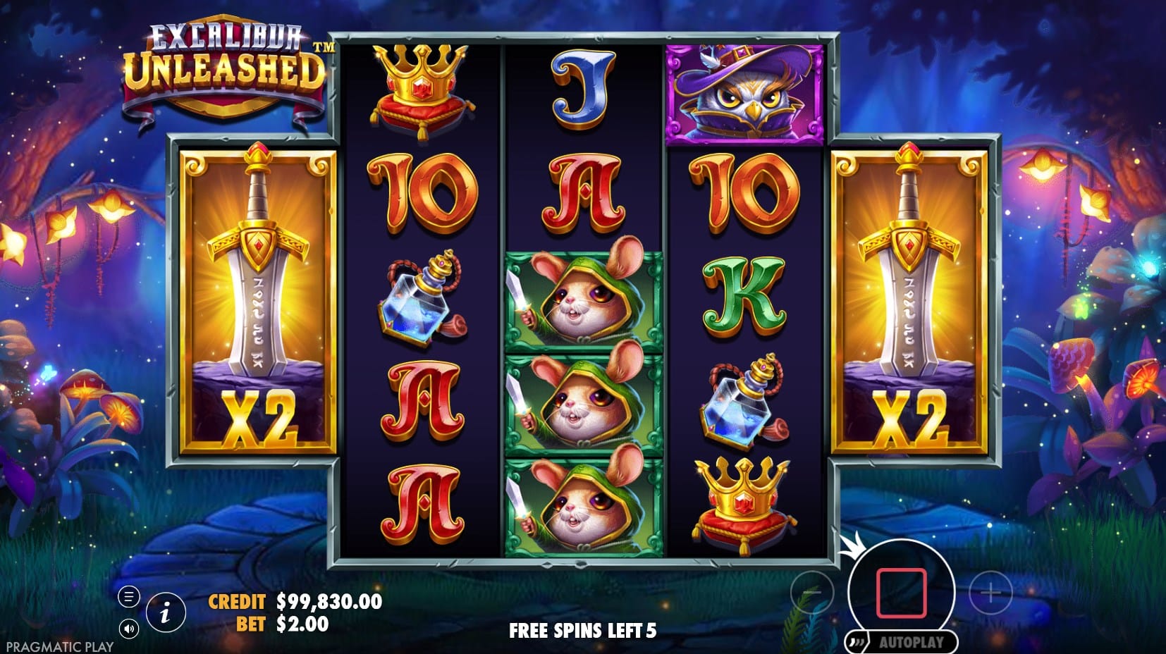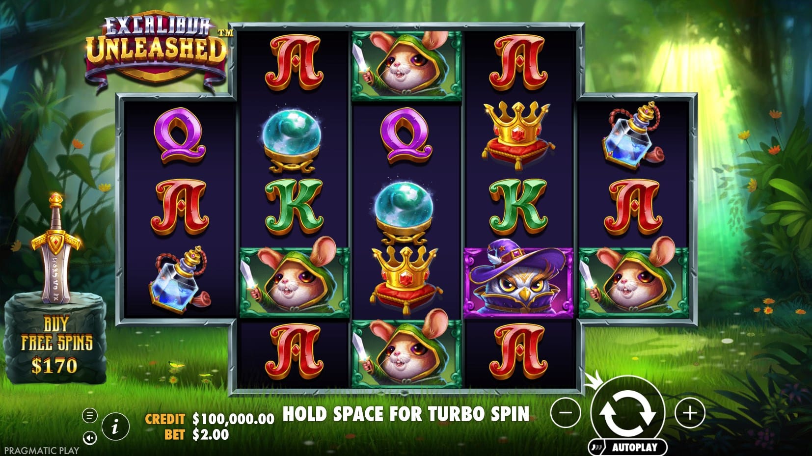 Excalibur Unleashed is a fantasy-themed video slot developed by Pragmatic Play and released on April 27, 2023. The game draws inspiration from Arthurian legend, centering around King Arthur’s legendary sword, Excalibur, embedded in a stone. Players follow a whimsical bird character in a purple hat and robe, and a green-clad mouse wielding a knife, as they quest through an enchanted forest to claim the sword symbolizing rightful sovereignty. Unlike some modern tales conflating it with the Sword in the Stone, this slot distinctly features Excalibur.