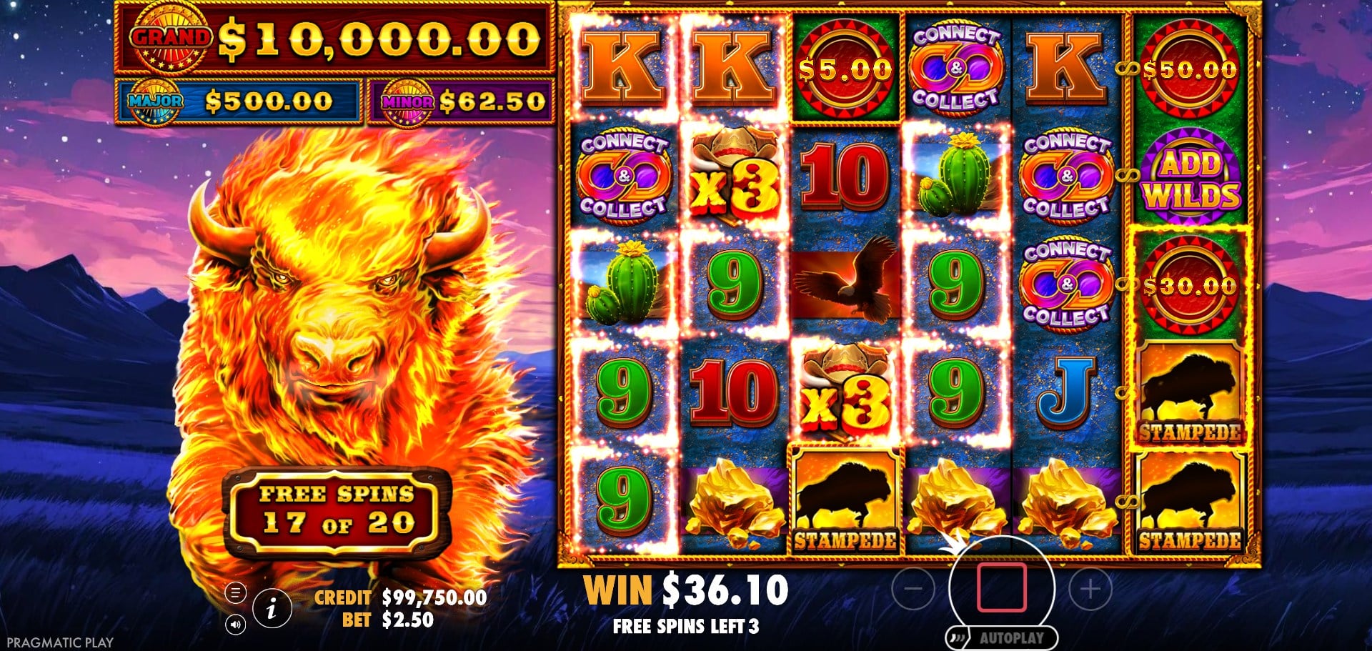 Pragmatic Play, together with partner Wild Streak Gaming, revisits its Connect & Collect system with Fire Stampede 2 Linked Awards, the follow-up to 2023’s Fire Stampede. This sequel doesn’t try to reinvent the wheel—at first glance, the layout and overall experience echo the original closely—but it aims to refine a formula that clearly resonated with players the first time around. The new entry keeps the blazing bison mascot front-and-center, offering a mixture of money awards, dynamic connections, and all-ways-style payouts across a slightly unconventional 6×5 grid.