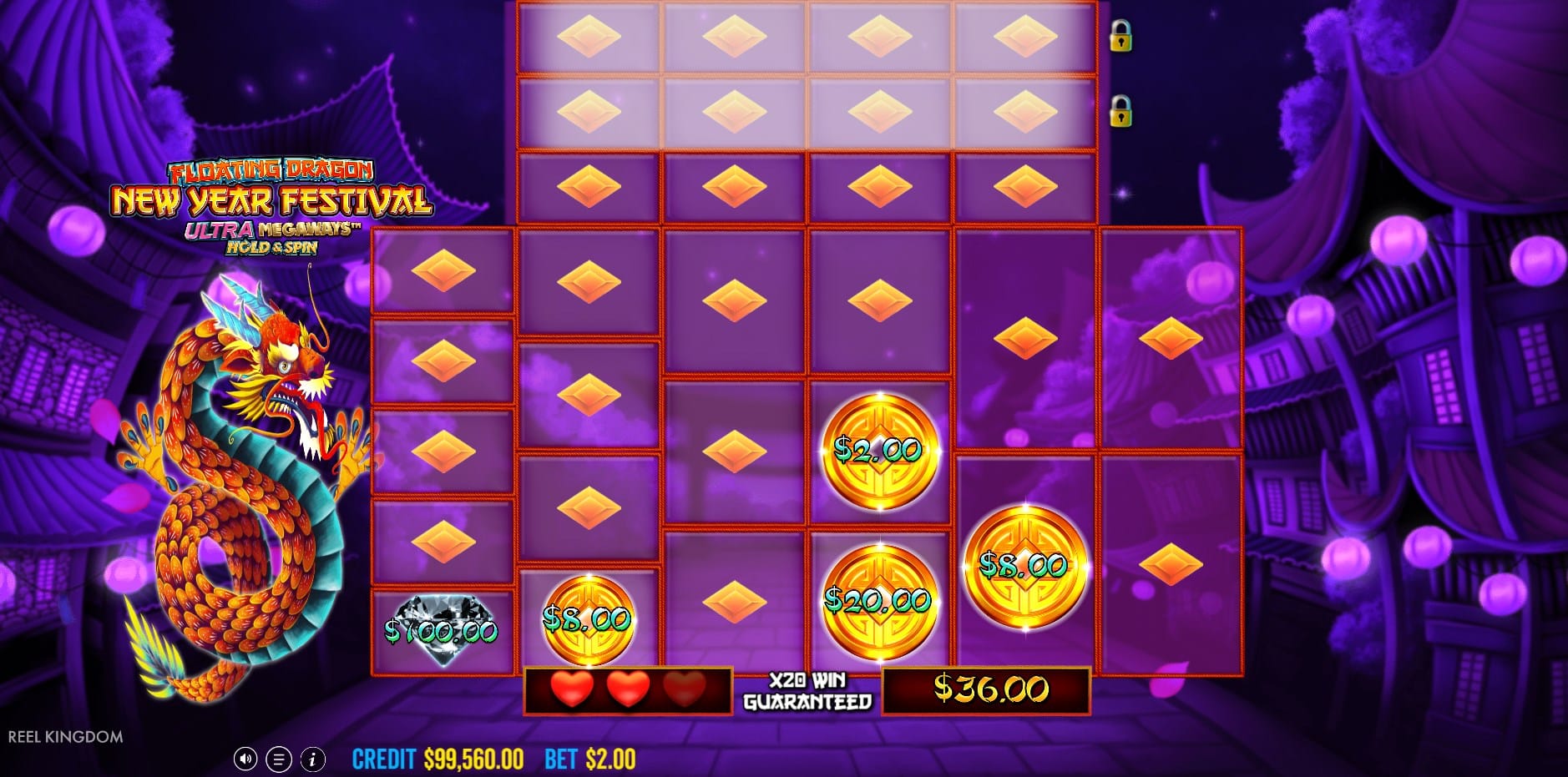 | Hold & Spin | 3+ Coins | 3 respins reset; 20x min guarantee |