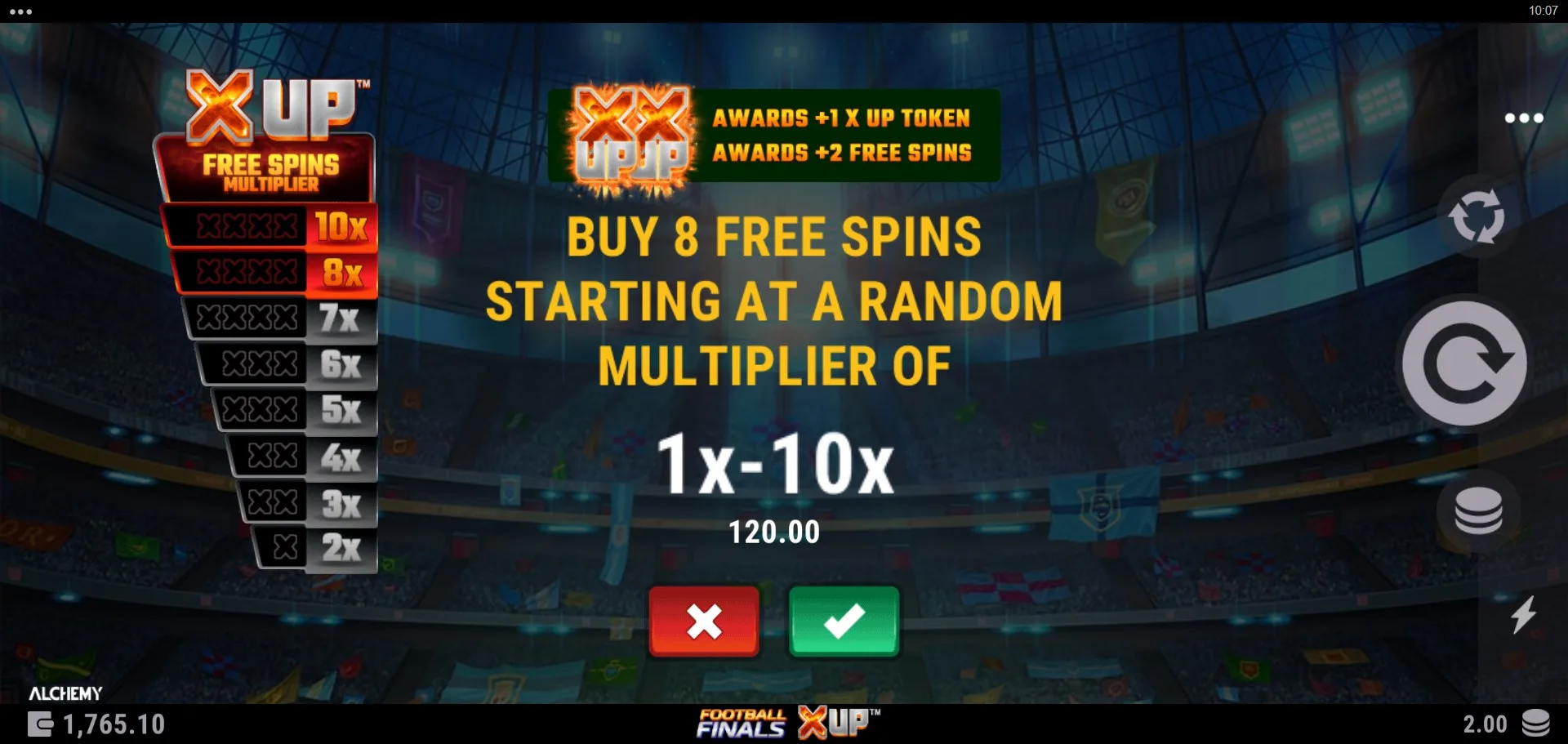 Alchemy Gaming, a Games Global partner studio, has previously launched several X UP-powered titles. Football Finals X UP feels like a natural evolution—or even a thematic re-skin—of earlier releases such as Joker X UP and Bolt X UP, but with a strong football twist. At its core, the game revolves around collecting X UP Tokens to boost free spins multipliers, making timing and token management a crucial part of gameplay.