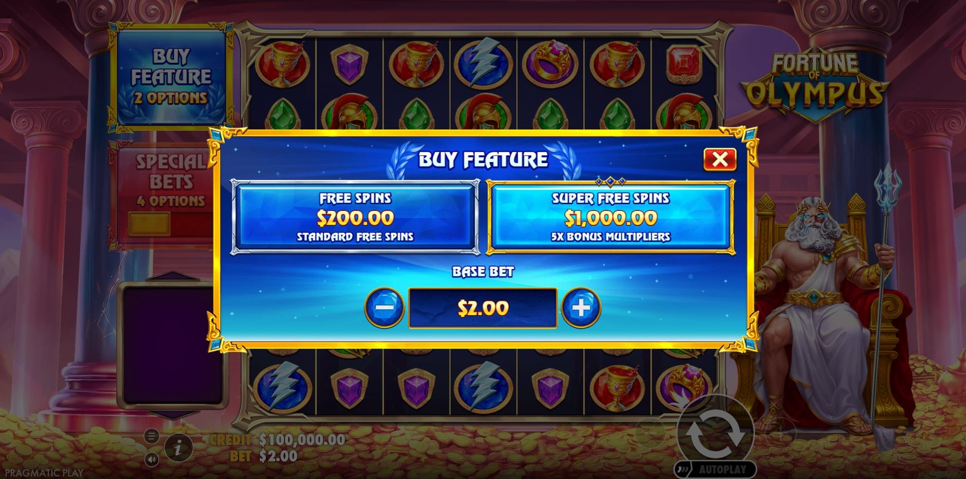 Fortune of Olympus packs multiple interconnected features centered on cascading reels, multipliers, and Free Spins, with buy and ante options for accelerated access.