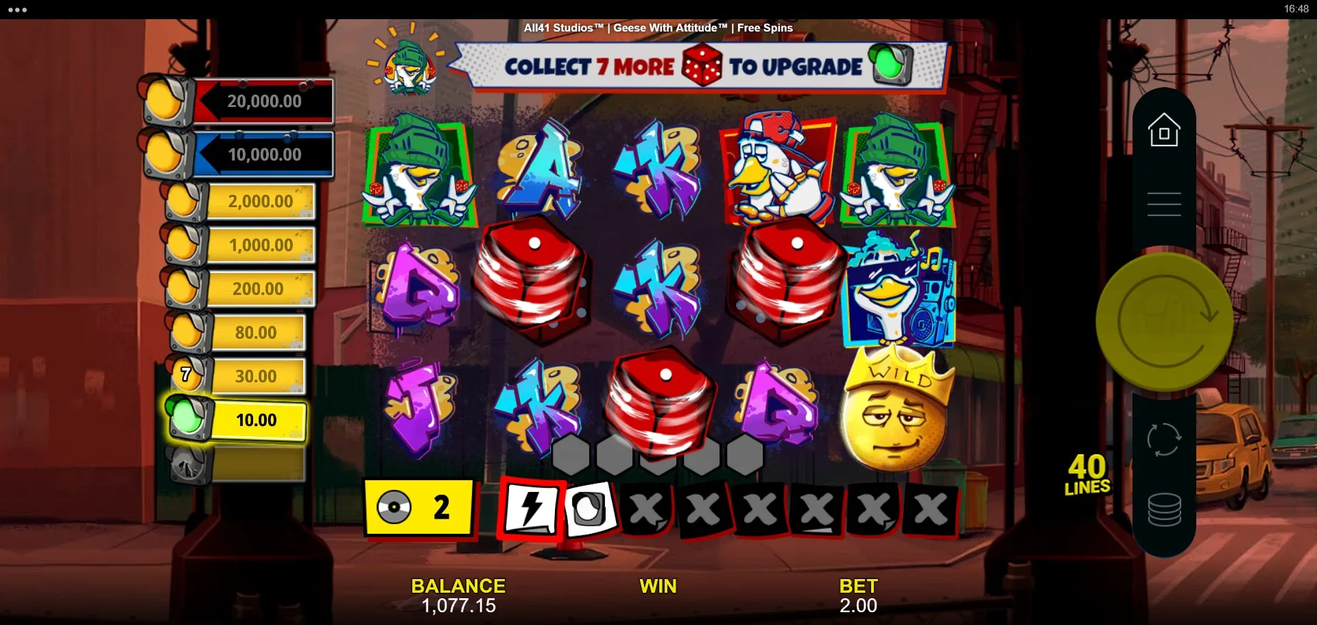 Set in a bustling cityscape filled with skyscrapers, graffiti, and street signs, Geese With Attitude offers a 5-reel, 3-row layout with 40 paylines and a high volatility profile. Players can expect a 96.10% RTP, a hit frequency of 34.14%, and a maximum win potential of 10,000x the bet. It’s designed for those who appreciate a mix of humor, nostalgia, and potentially big payouts—all wrapped up in a theme that’s equal parts parody and celebration of hip-hop culture.