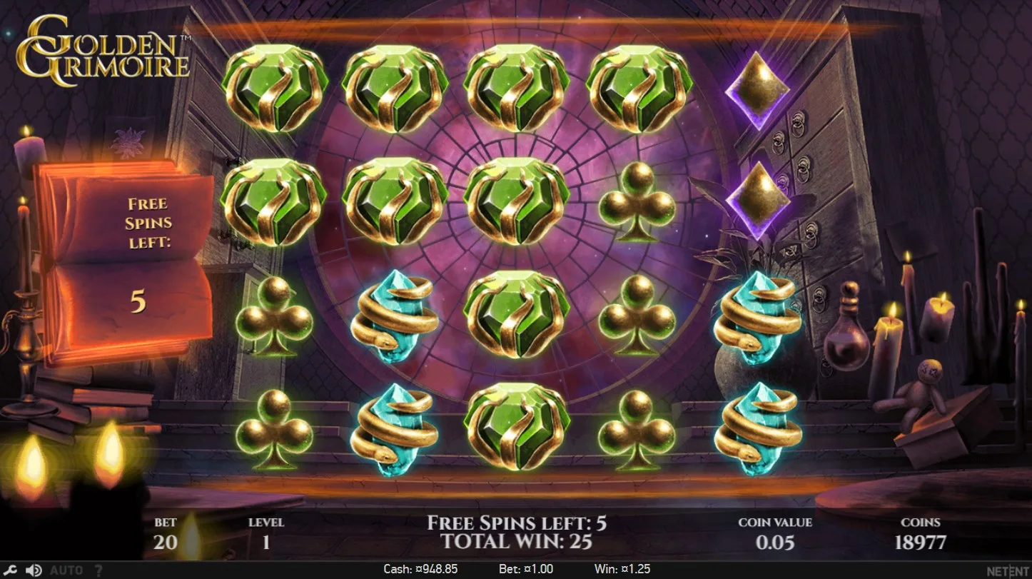 Golden Grimoire is NetEnt’s attempt to enchant players with a visually immersive slot inspired by the arcane and mysterious. The word “Grimoire” itself refers to a book of spells and magical instructions, setting the tone for what should be an atmospheric journey through a sorcerer’s chamber. Designed as a 5-reel, 4-row slot with 40 fixed paylines, this game leans into symbol transformation as its central mechanic, promising gameplay rich in mystique—though, depending on expectations, it may not fully deliver on the magical front.