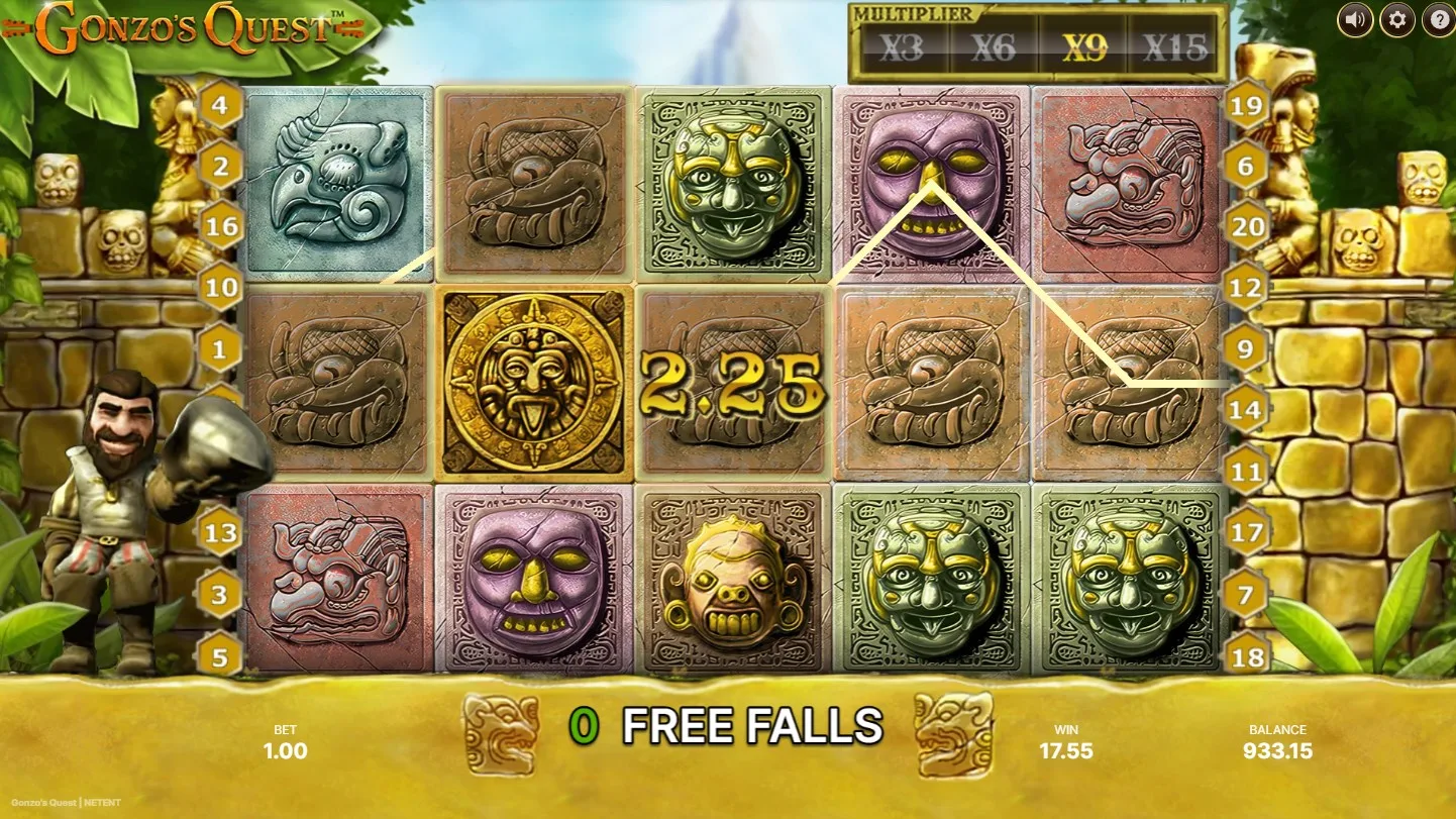 Free Falls Feature Gonzo’s Quest doesn’t have a traditional “Free Spins” mode—instead, it offers Free Falls, a more thematic twist. You’ll need to land three Free Fall symbols (golden masks) on a payline starting from the first reel to trigger the feature.