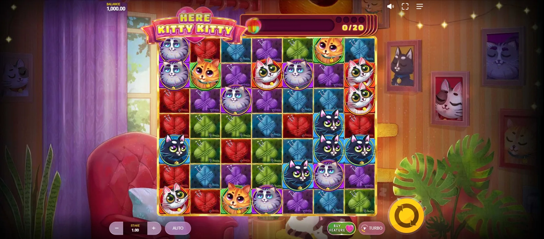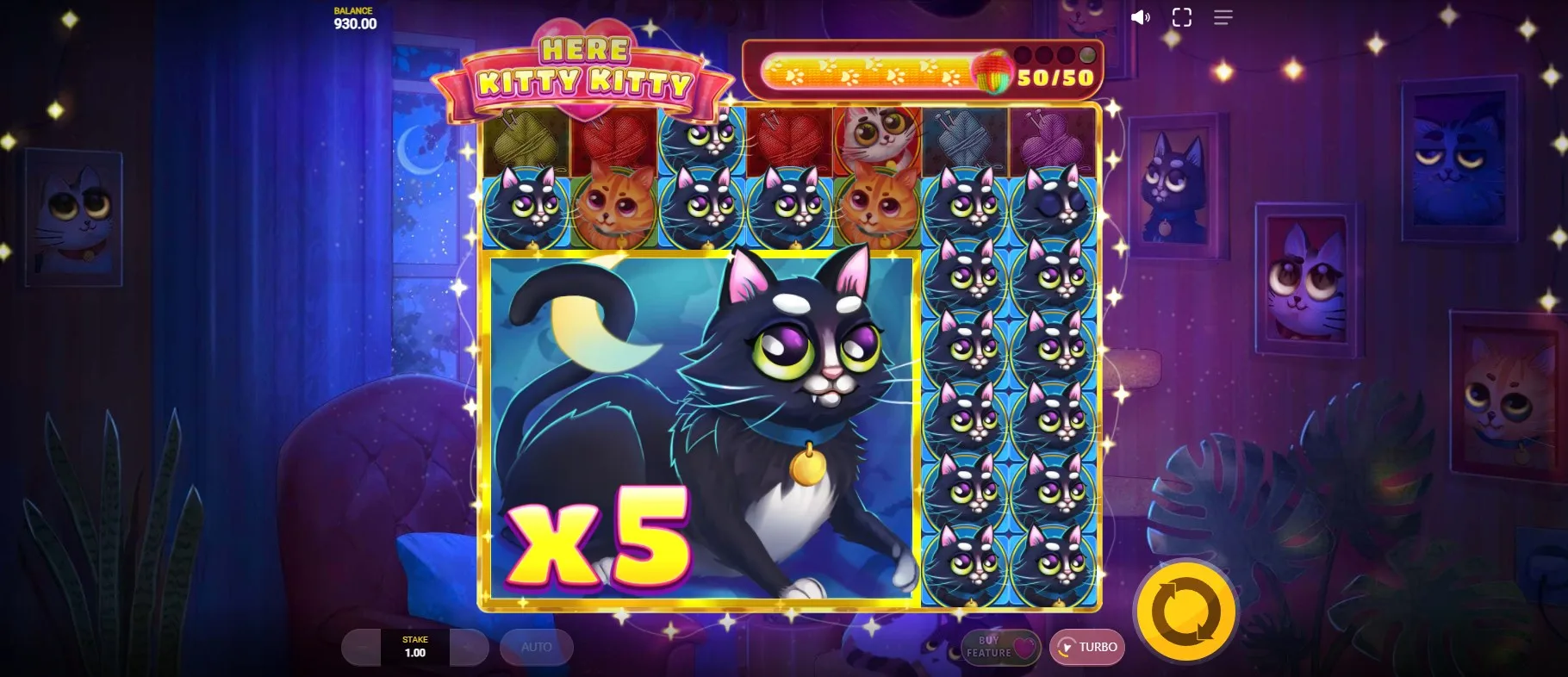 Here Kitty Kitty is a delightful, feature-driven grid slot that brings together adorable cat characters, cascading wins, and clever bonus mechanics. It doesn’t try to compete with high-volatility, mega-payout slots, but rather focuses on building a cozy, feel-good environment that still offers a solid level of engagement and win potential.
