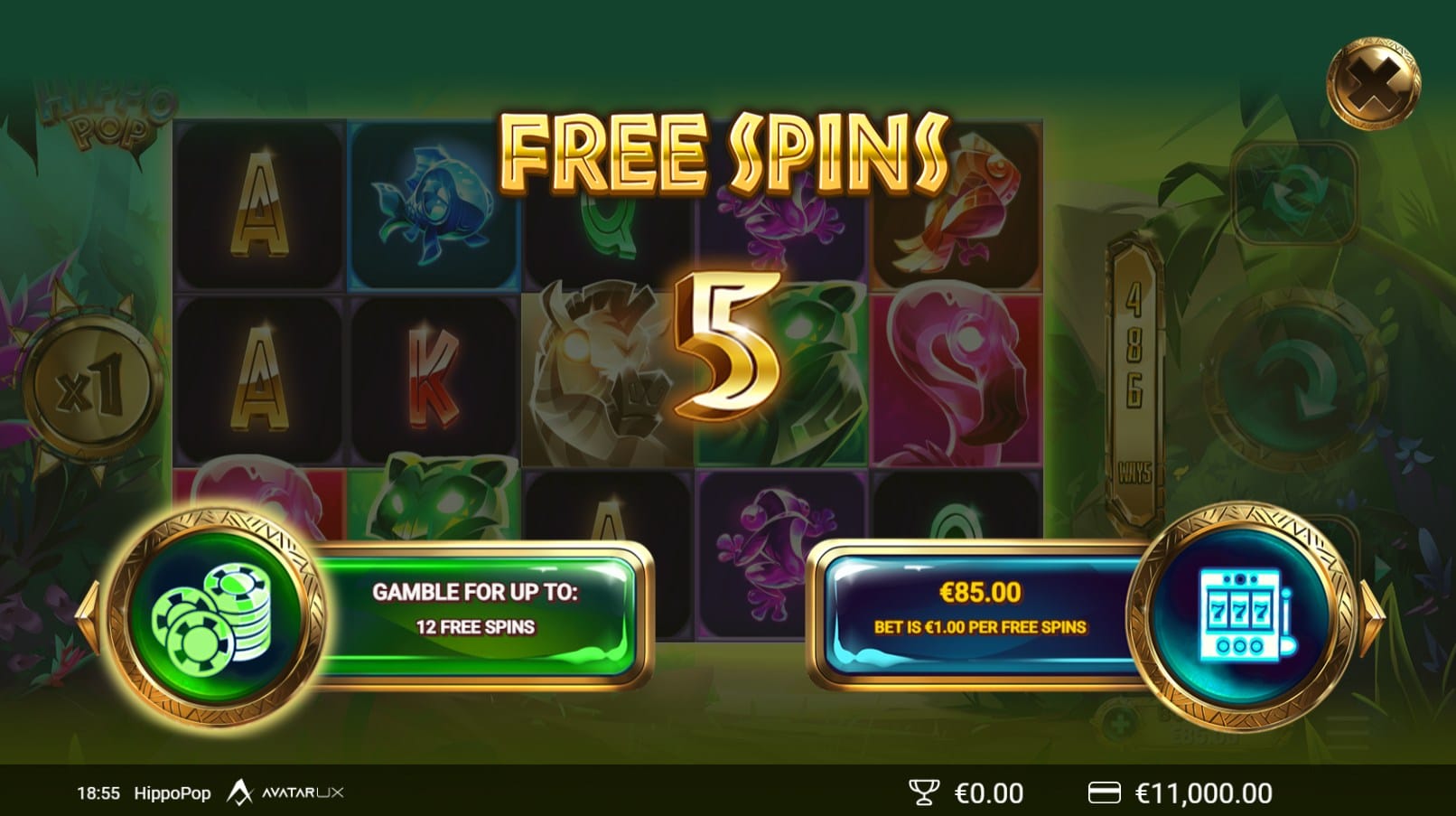 HippoPop’s bonus features are centered around its free spins mode, enhanced by the gamble wheel and multipliers.