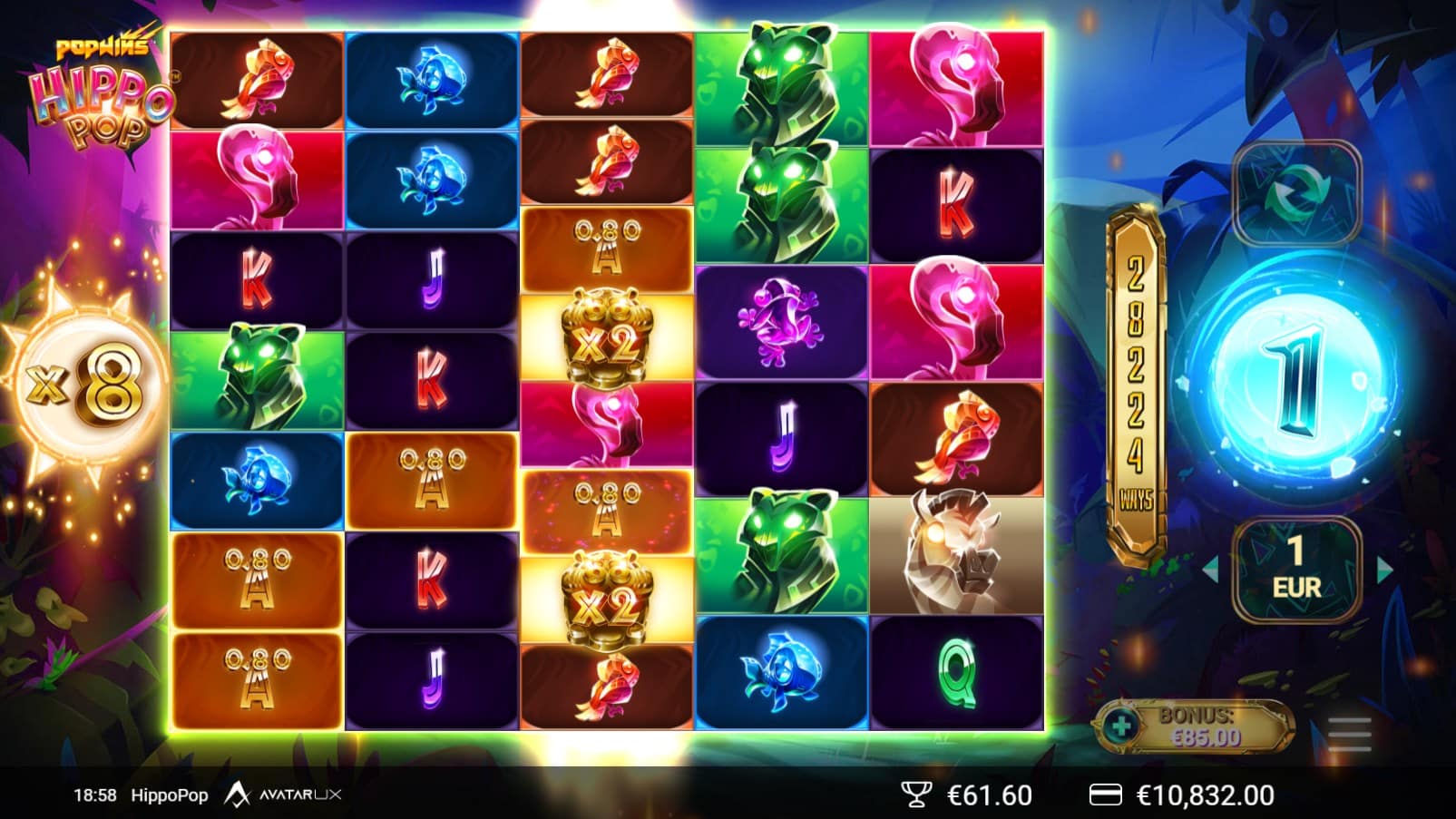 HippoPop is a vibrant and highly rewarding entry in AvatarUX’s PopWins series, offering players an exotic jungle adventure with psychedelic flair. While it doesn’t introduce major innovations compared to earlier titles like CherryPop or PapayaPop, it refines the formula with a unique theme, engaging visuals, and the potential for truly astronomical wins.