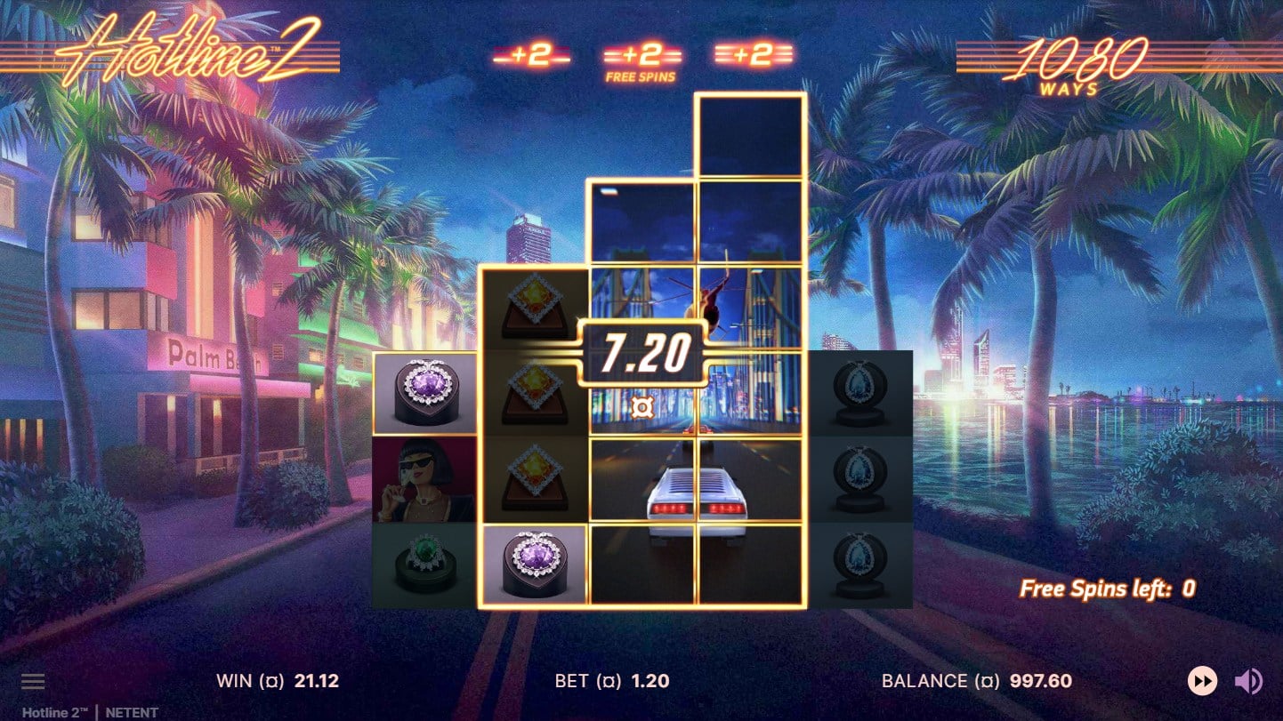 Hotline 2 is a video slot developed by NetEnt, serving as the sequel to the original Hotline slot. It immerses players in a retro 1980s Miami theme inspired by crime-fighting aesthetics reminiscent of Miami Vice, featuring neon-soaked streets, pastel blazers, sports cars, and a nostalgic vibe. Released as a modern upgrade to its predecessor, the game employs a 5-reel, 3-row grid with 243 ways to win in the base game, which can expand during features up to 1,944 ways to win. The gameplay revolves around strategic Hotline activations and expanding mechanics, appealing primarily to fans of cinematic, retro-themed slots who enjoy medium-volatility experiences with tactical betting options and high win potential reaching a maximum of 5,184x the stake. This setup combines classic ways-to-win mechanics with dynamic reel expansions, targeting players seeking engaging base game flow and feature-driven excitement in a polished, thematic package.