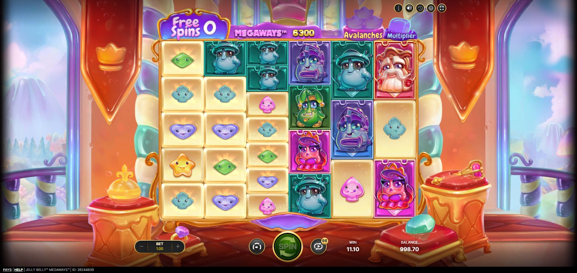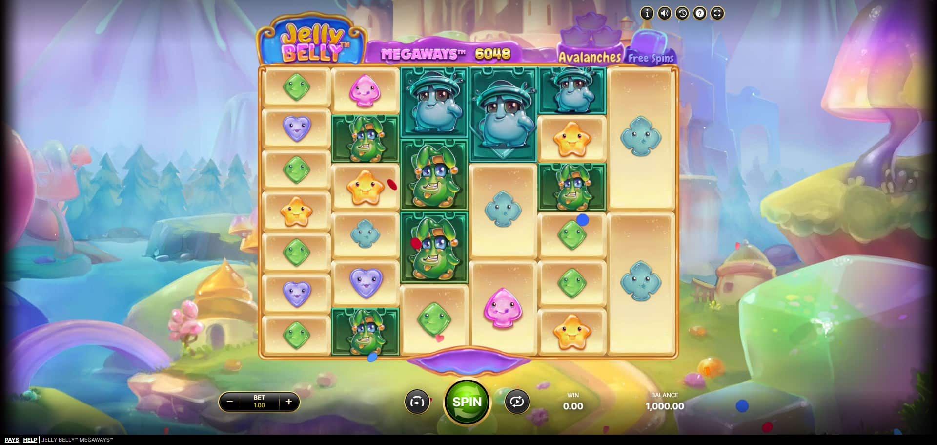 Jelly Belly Megaways includes several engaging bonus mechanics centered around the Avalanche system and Free Spins. The primary bonus is triggered by landing at least three consecutive Avalanches in a single base game spin, awarding Free Spins based on the number achieved: